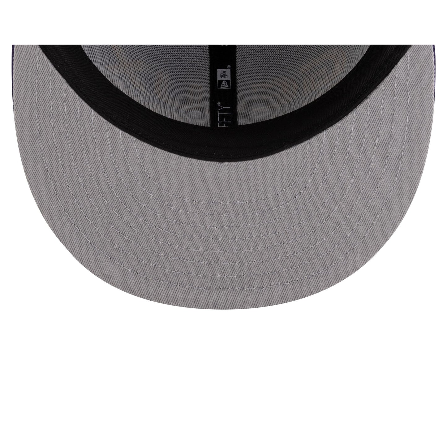 The LSU Tigers Geaux 59FIFTY Fitted Cap features an embroidered Tigers slogan wordmark at the front panels with a logo at the right-wear side and rear.