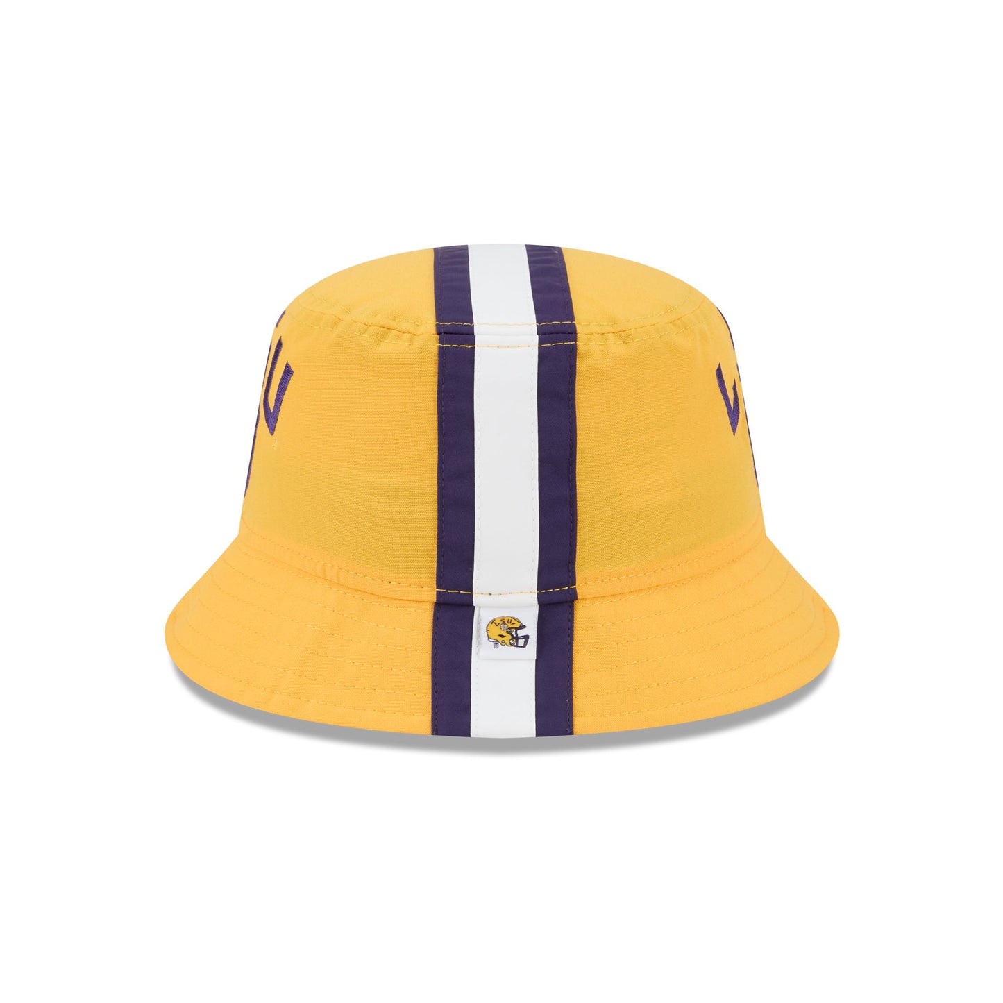 The LSU Tigers Helmet Bucket Hat features an embroidered Tigers helmet design throughout.
