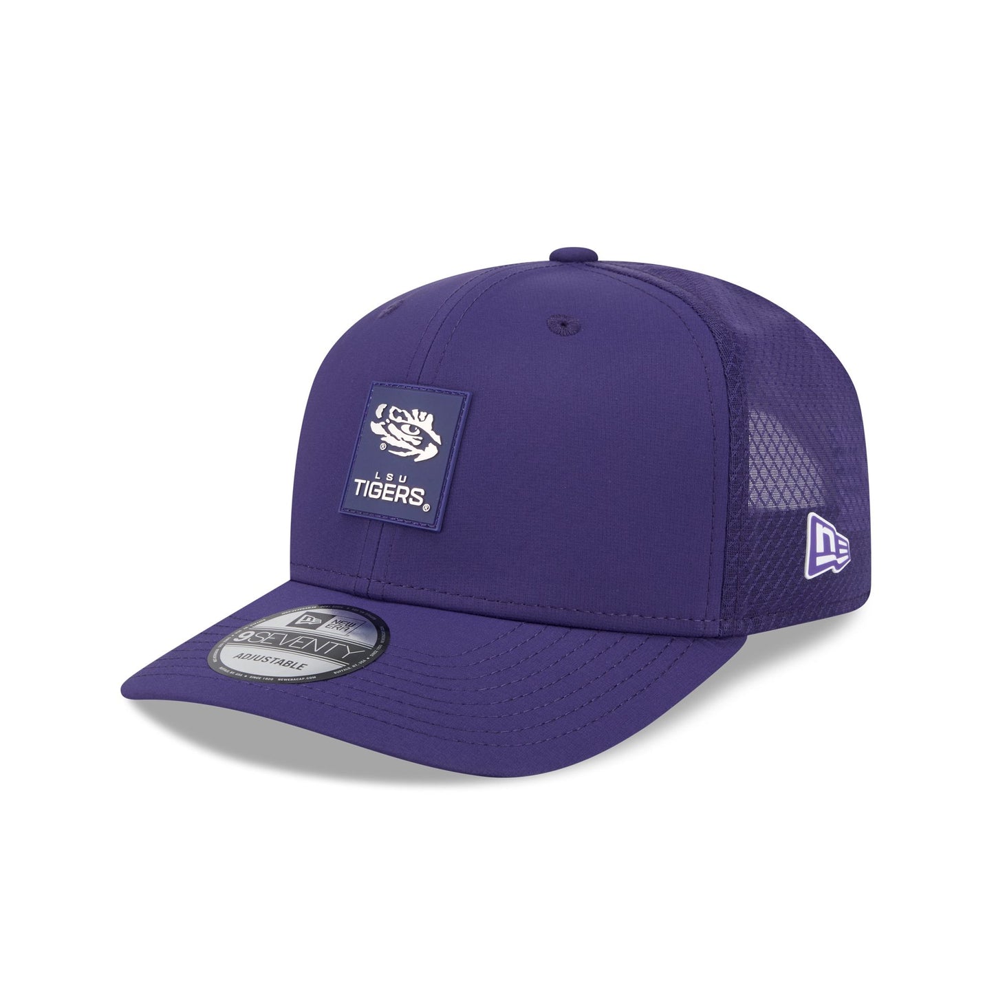 The LSU Tigers Hot Weather 9SEVENTY Trucker features a sewn-down silicone Tigers logo patch at the front panels with a water-repellent quill tech fabrication throughout and a quick-dry cushioned sweatband to absorb moisture. Additional details include a team wordmark on a soft silicone snapback closure at a light-weight mesh rear with team color silicone transfer details at the undervisor.