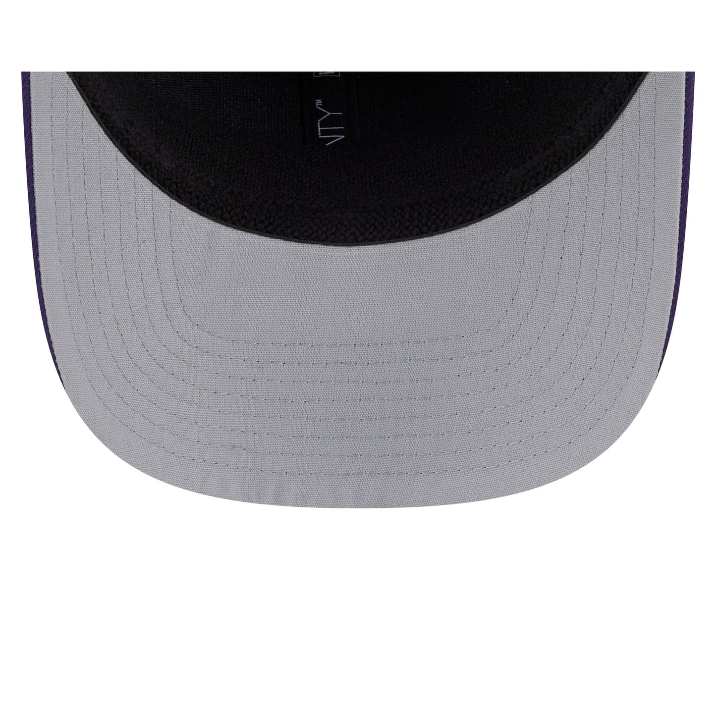 The LSU TIGERS Purple Team 9SEVENTY Stretch-Snap Cap features an embroidered Tigers logo at the front panels with an alternate team logo above a snapback closure at the rear and a gray undervisor.