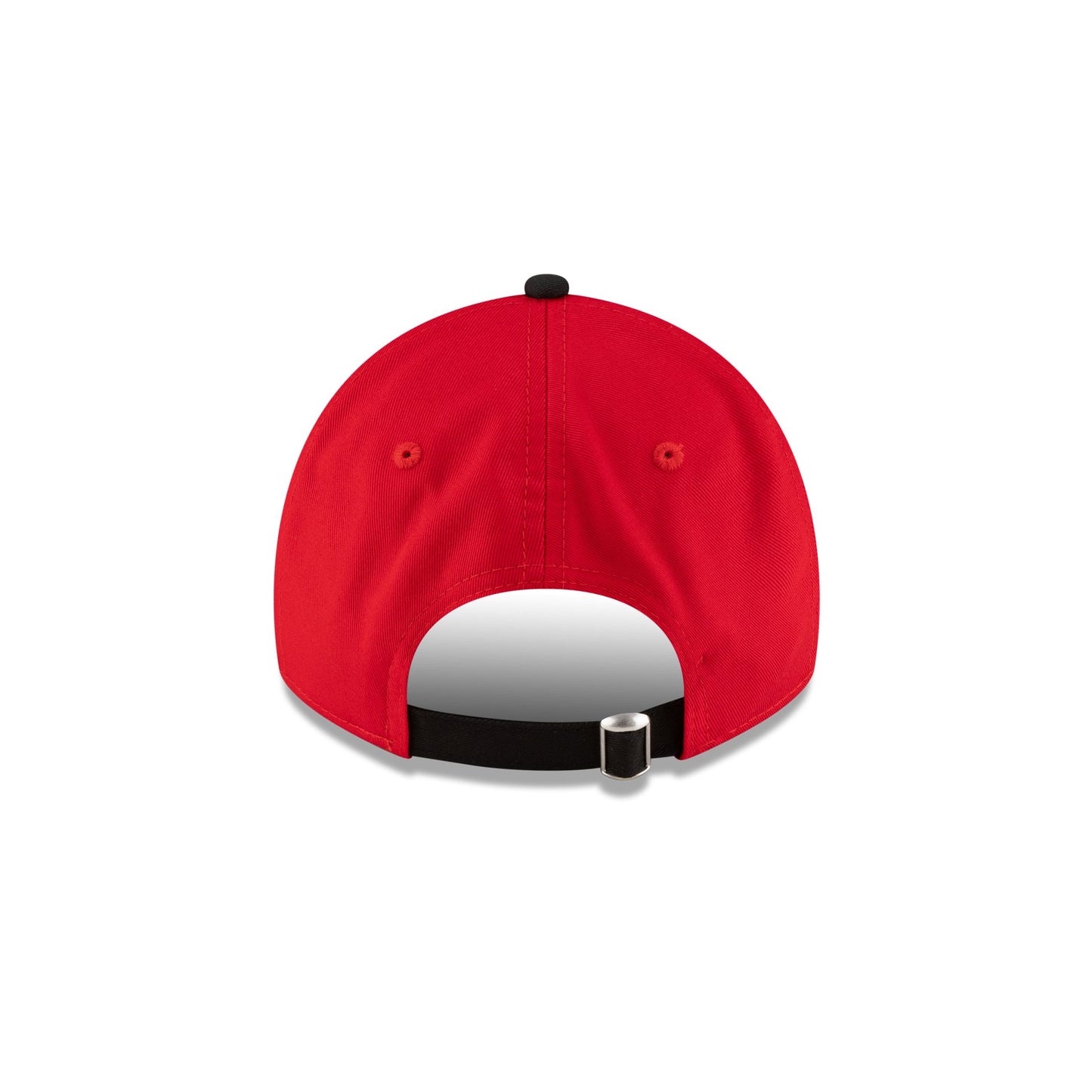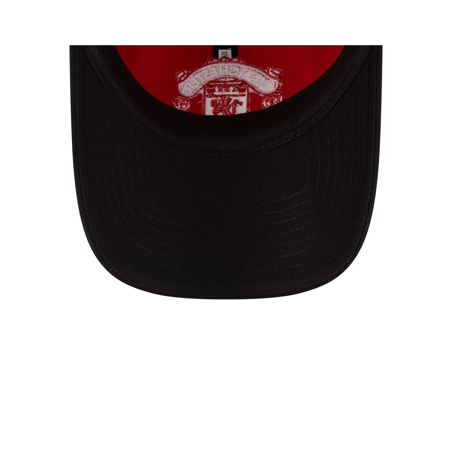The Manchester United FC Bar Stripe 9TWENTY Adjustable Cap features an embroidered Manchester United logo at the front panels with stripes at the right-wear side and an adjustable D-Ring closure at the rear.