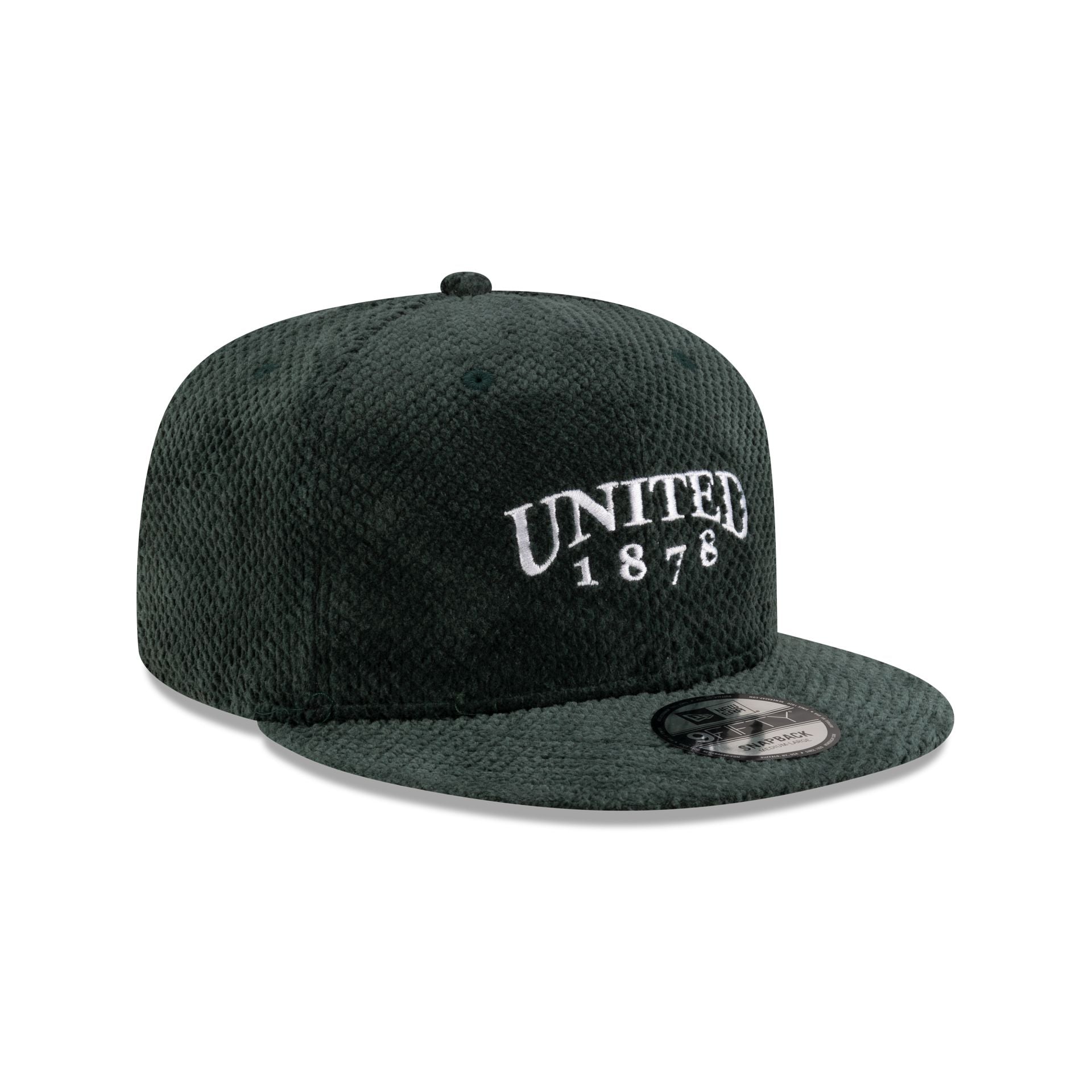 The Manchester United FC Bobble Terry 9FIFTY Snapback features an embroidered Manchester 1878 wordmark at the front panels with a woven team logo tag at an adjustable snapback closure at the rear.