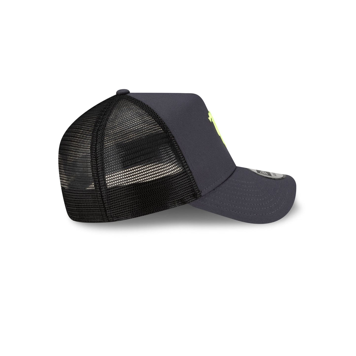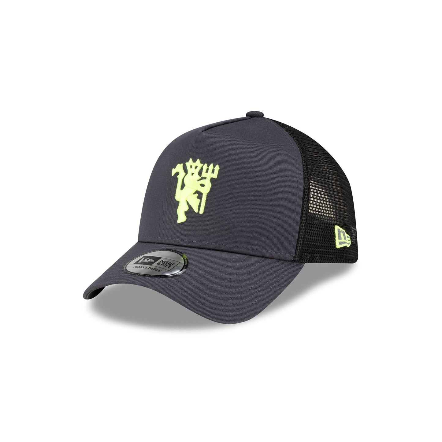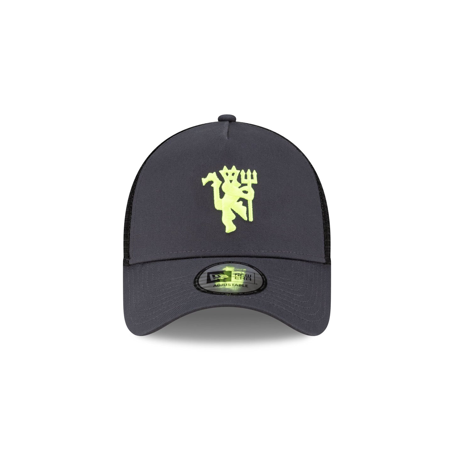 The Manchester United FC Cyber Yellow Pop 9FORTY A-Frame Snapback features an embroidered Manchester United logo at the front panels with an adjustable stretch-snap closure at a mesh rear.