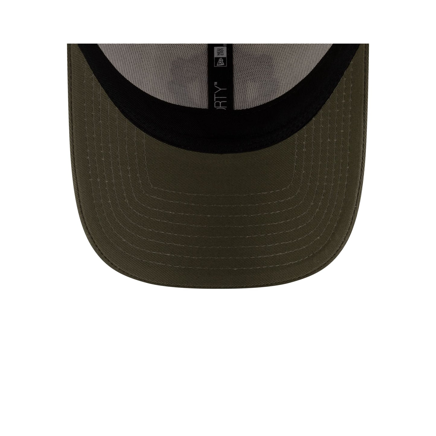The Manchester United FC Ivory 9FORTY Adjustable Cap features an embroidered Manchester logo at the front panels with an olive visor and an adjustable D-Ring closure at the rear.