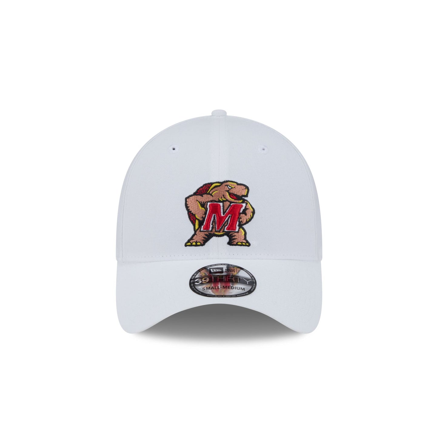 The Maryland Terrapins Optic White 39THIRTY Stretch Fit features an embroidered Terrapins logo at the front panels with a team wordmark at the rear.