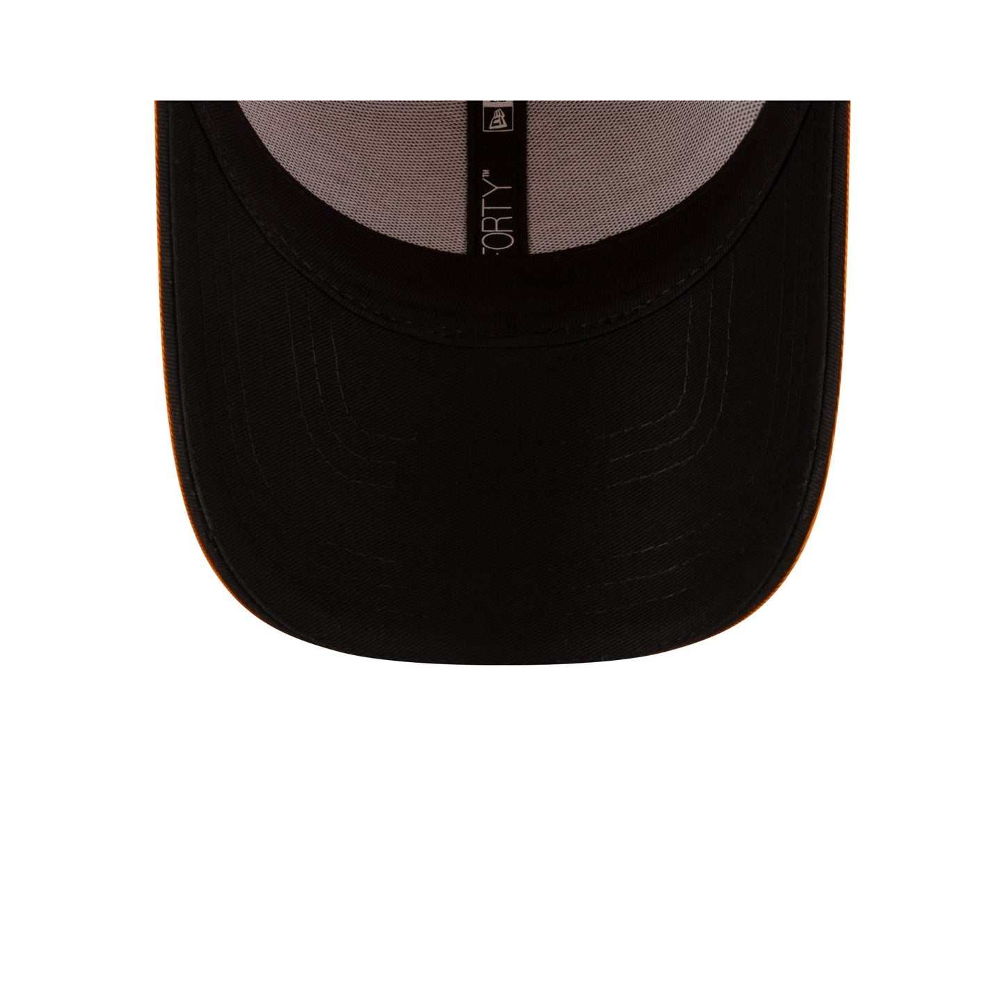 The McLaren Automotive Black 9FORTY Adjustable Cap features a screen-printed McLaren Racing logo at the front panels with a split colored visor, a black undervisor, and an adjustable D-Ring closure at the rear.
