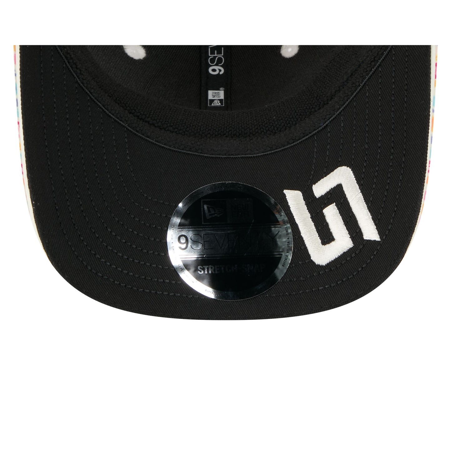 The McLaren Formula 1 Team 2025 Mexico City Race Special Lando Norris 9SEVENTY Stretch-Snap features an embroidered McLaren Racing logo at the front panels with the driver's number at the visor. Additional details include a McLaren tag logo above an adjustable stretch-snap closure at the rear, sponsor logos throughout, and initials at a black undervisor.
