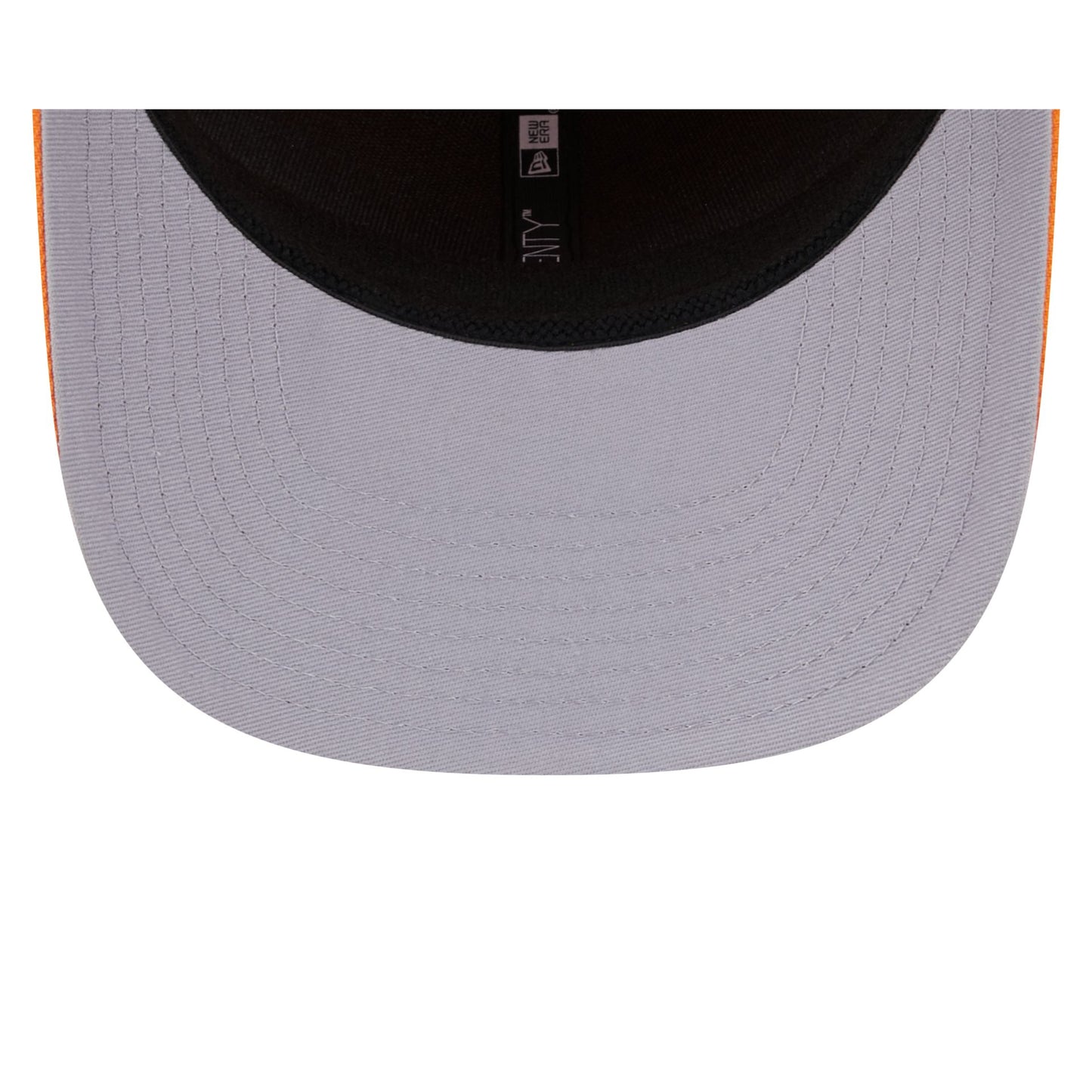 The McLaren Formula 1 Team 9SEVENTY Stretch-Snap Hat features an embroidered McLaren wordmark at the front panels, a matching tag on a snapback closure at the rear, and a gray undervisor.
