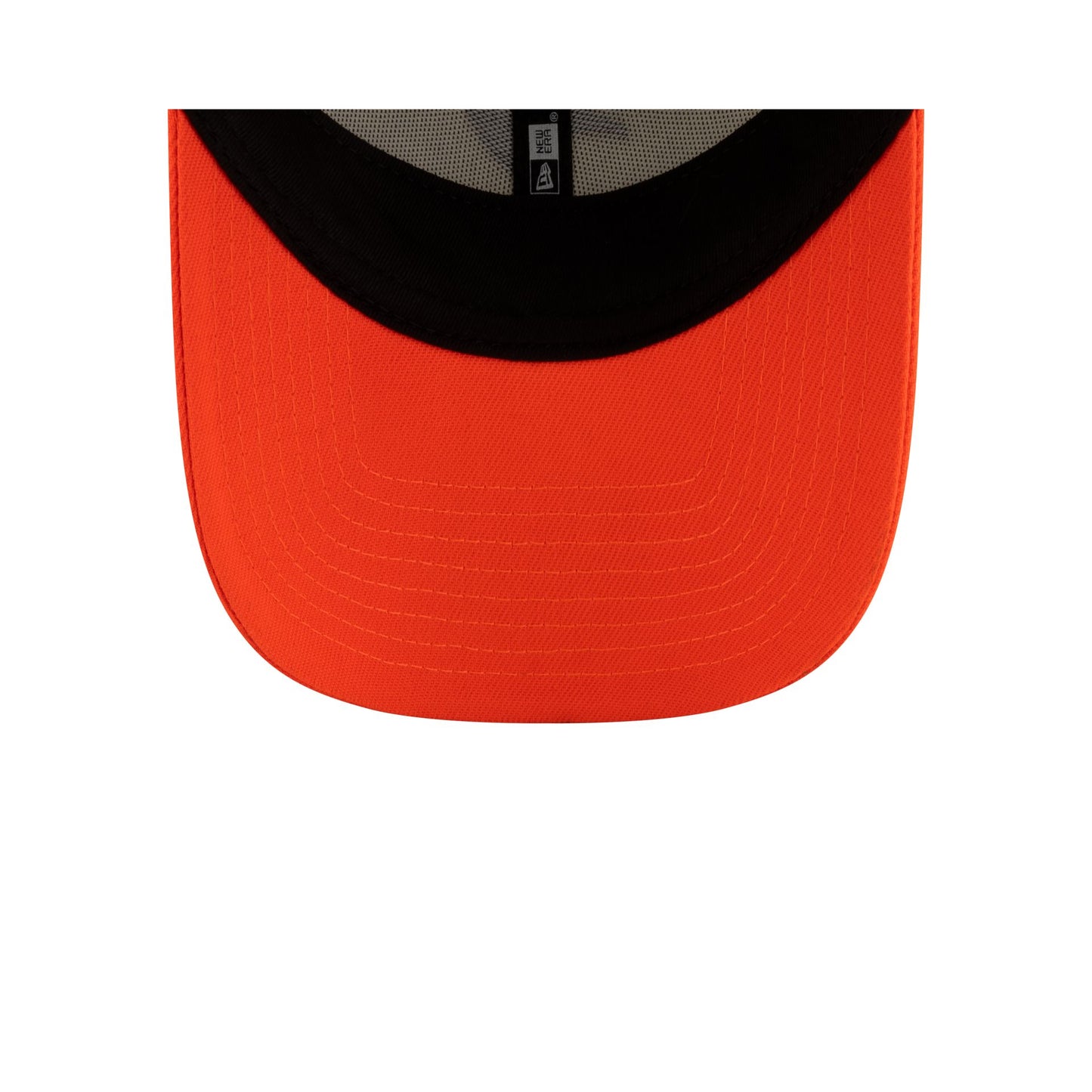 The McLaren Formula 1 Team Contrast Visor 9FORTY Adjustable Cap features an embroidered McLaren logo at the front panels with an orange visor and an adjustable D-Ring closure at the rear.