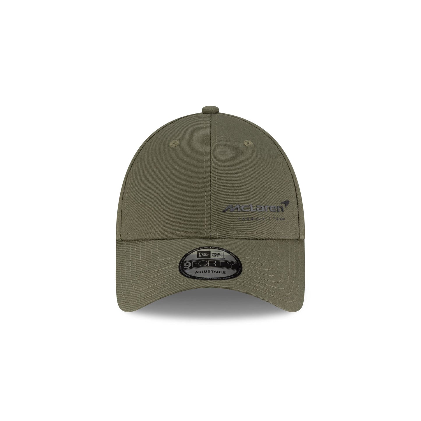 The McLaren Formula 1 Team Essential Dark Green 9FORTY Snapback features a screen-printed McLaren Racing wordmark at the front left panel with a New Era Flag at the left-wear side and an adjustable snapback closure at the rear.
