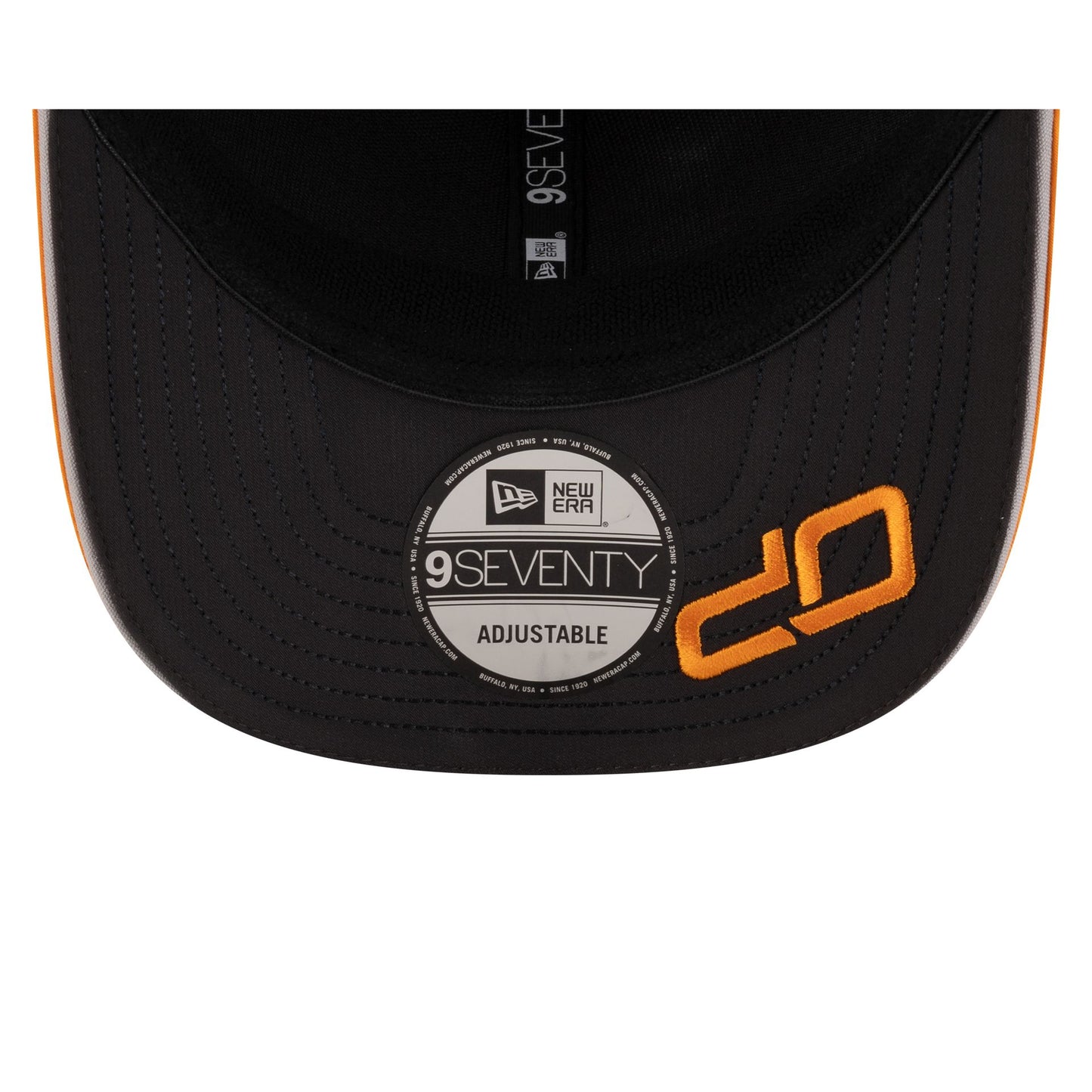 The McLaren Formula 1 Team Oscar Piastri 9SEVENTY Trucker features a rubber McLaren Racing logo at the front panels with a woven team tag above a snapback closure at the rear. Additional details include the driver's number at the visor and an OP logo at the black undervisor.