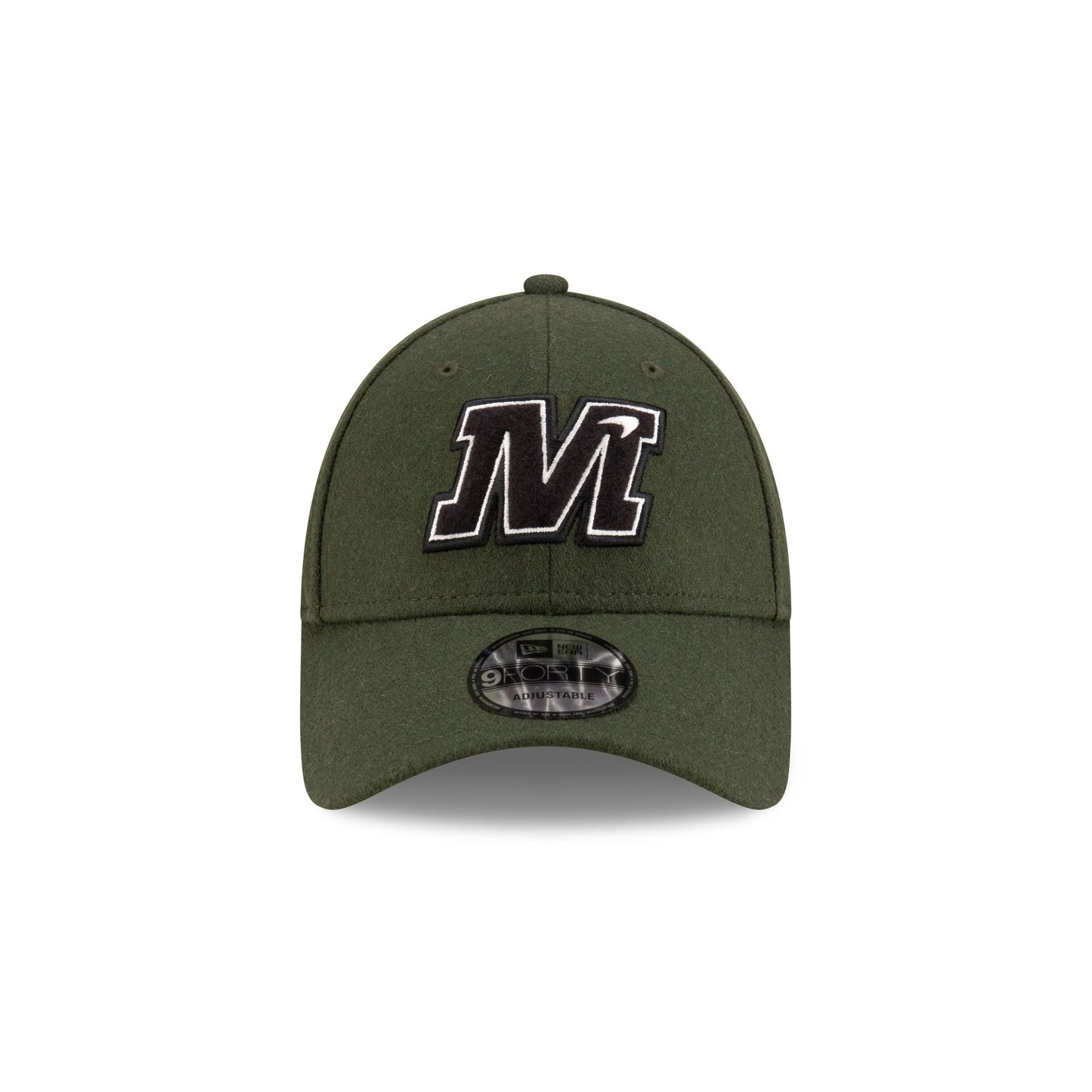 The McLaren Formula 1 Team Puff Patch 9FORTY Adjustable Cap features an embroidered McLaren Racing logo puff patch at the front with an olive undervisor and a woven team tag the adjustable D-Ring closure at the rear.