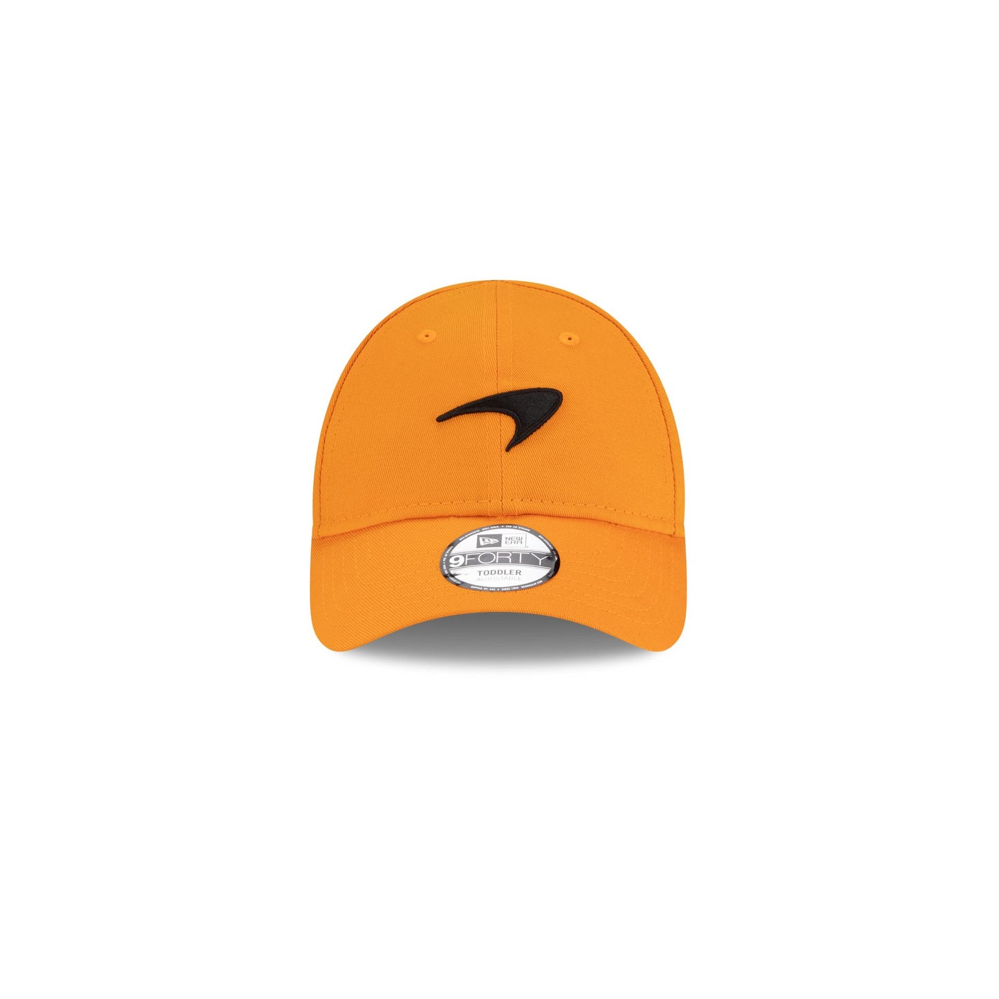 The McLaren Formula 1 Team Toddler 9FORTY Adjustable Cap features an embroidered McLaren Racing logo at the front panels with a matching woven team tag above an adjustable hook and loop closure at the rear.