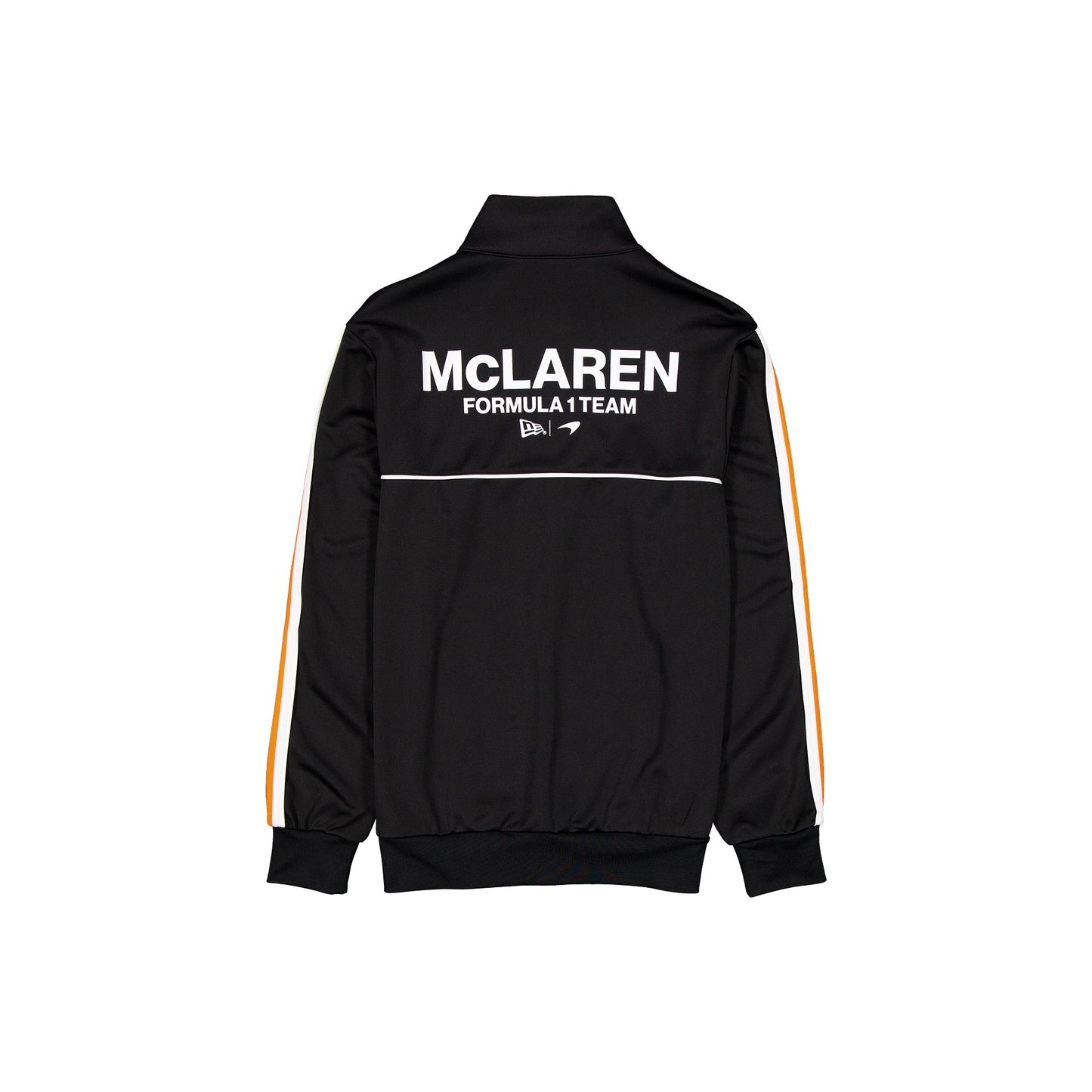 The McLaren Formula 1 Team Track Jacket features a screen-printed McLaren logo at the left chest with a wordmark at the rear. Additional details include front pockets and a zipper closure.