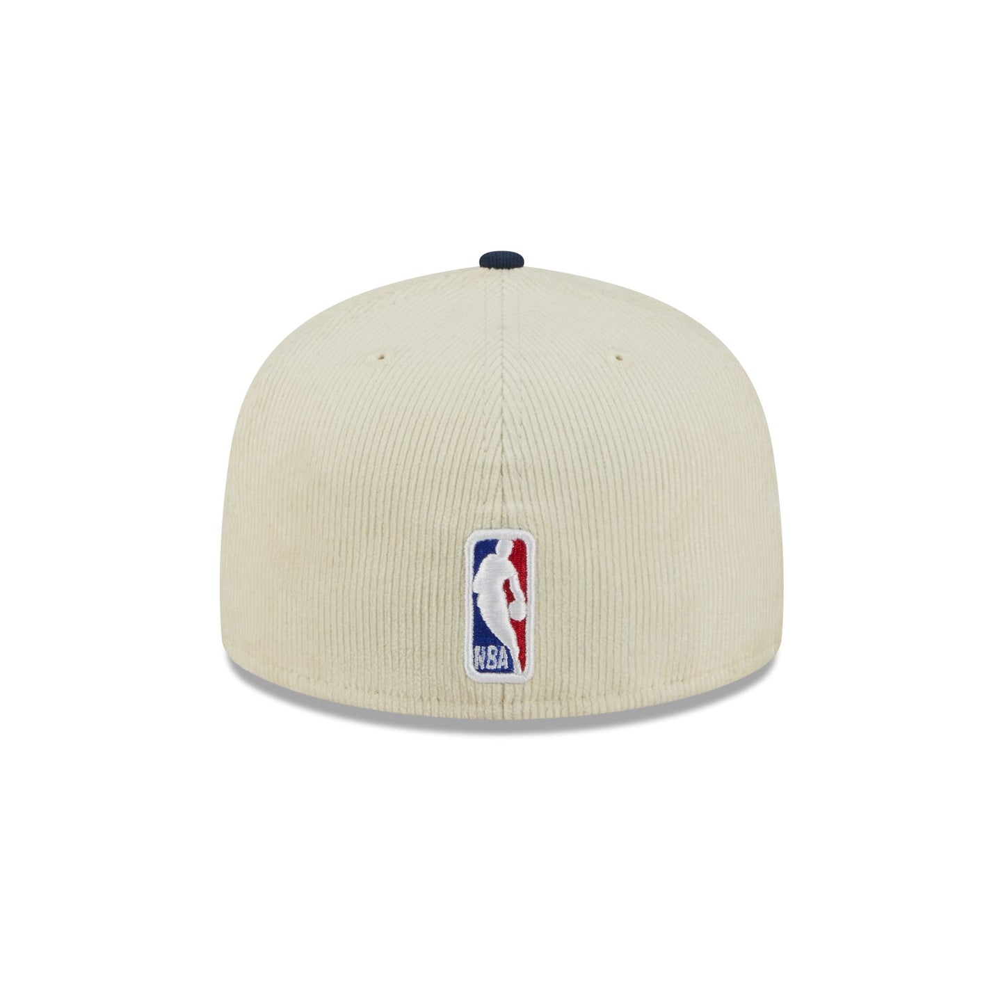 The Memphis Grizzlies 2025 City Edition Chrome White Corduroy 59FIFTY Fitted Cap features an embroidered Grizzlies City Edition logo at the front panels with a City Edition jock tag stitched at the right-wear side. Additional details include a corduroy fabrication, the NBA Logoman at the rear, and a gray undervisor.
