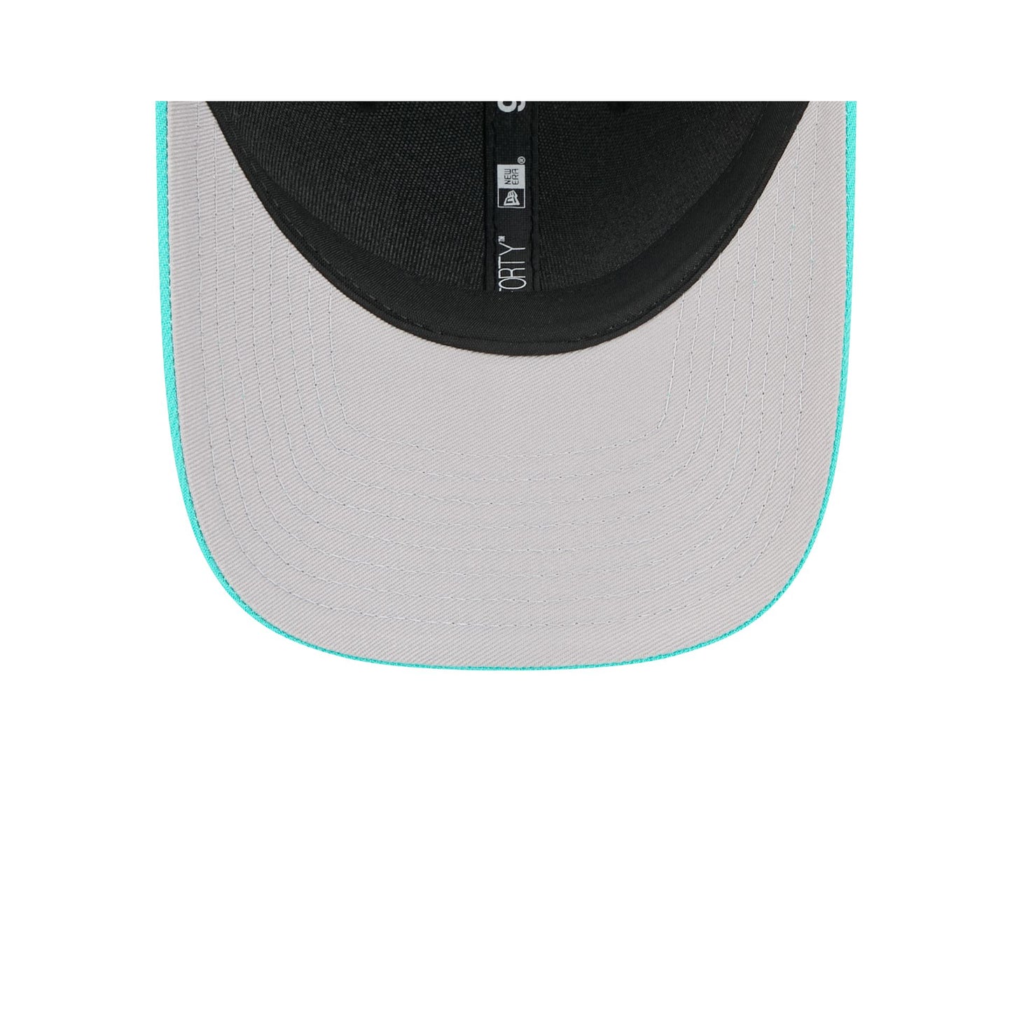 The Memphis Grizzlies 2025 Classic Edition 9FORTY M-Crown Snapback features an embroidered Grizzlies logo at the front panels with a matching team wordmark above a snapback closure at the rear. Additional details include an NBA Logoman patch at the right-wear side with a gray undervisor.
