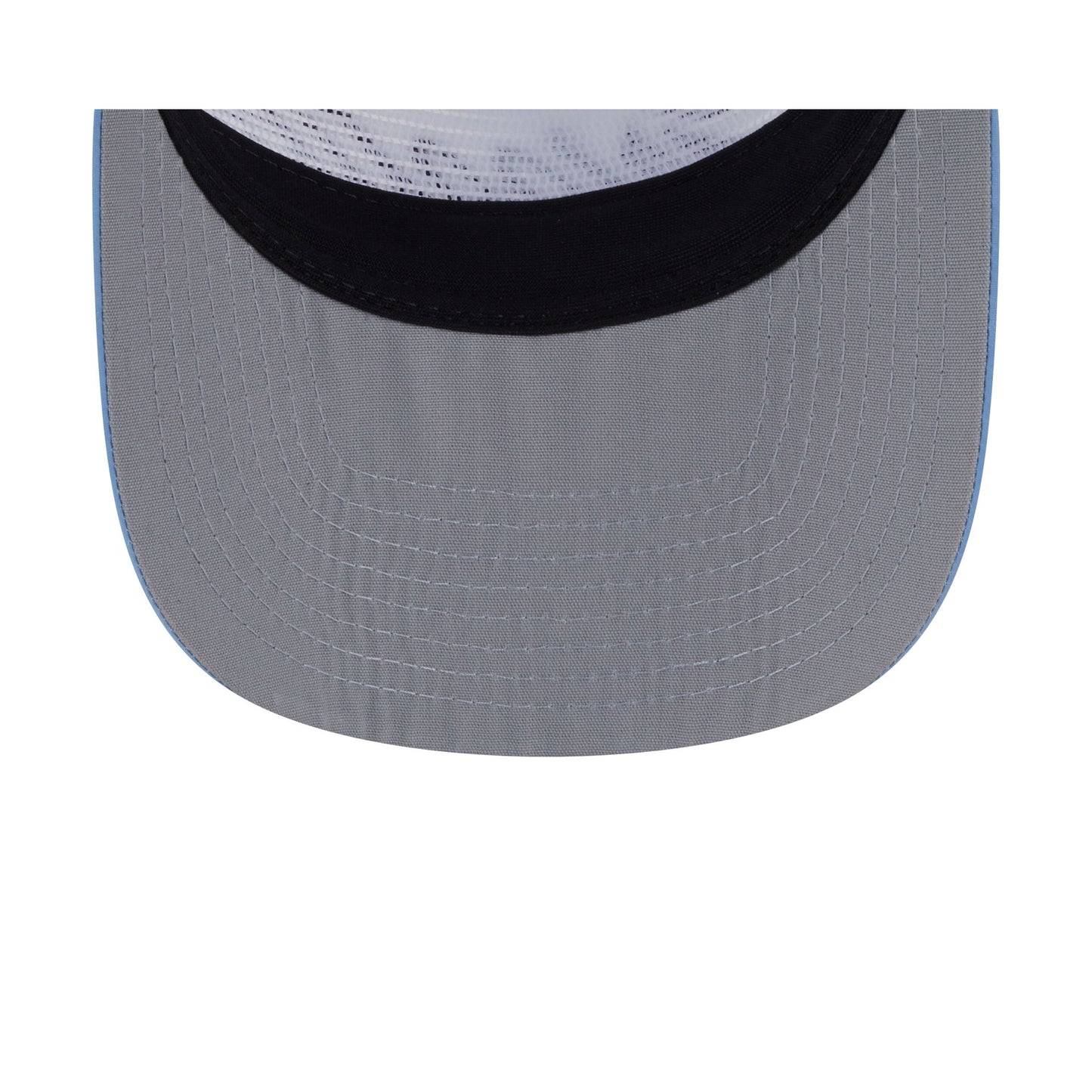 The Memphis Grizzlies 2025 Draft 19TWENTY Adjustable Cap features an embroidered Grizzlies script wordmark at the front panels with a team logo at the right-wear side. Additional details include a woven silicone NBA Logoman patch above an adjustable buckle closure at the rear and a gray undervisor. The strap features a National Basketball Association gel print wordmark.