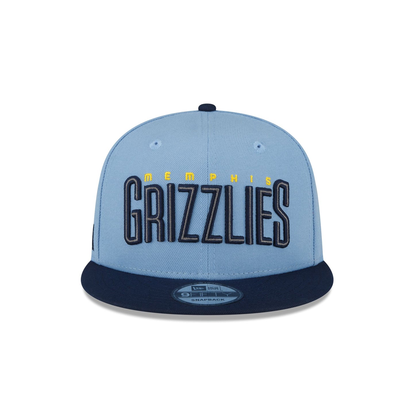 The Memphis Grizzlies 2025 Statement Edition 9FIFTY Snapback features an embroidered Grizzlies Statement Edition logo at the front panels with a logo at the right-wear side. Additional details include the NBA Logoman above an adjustable snapback closure at the rear and a gray undervisor.