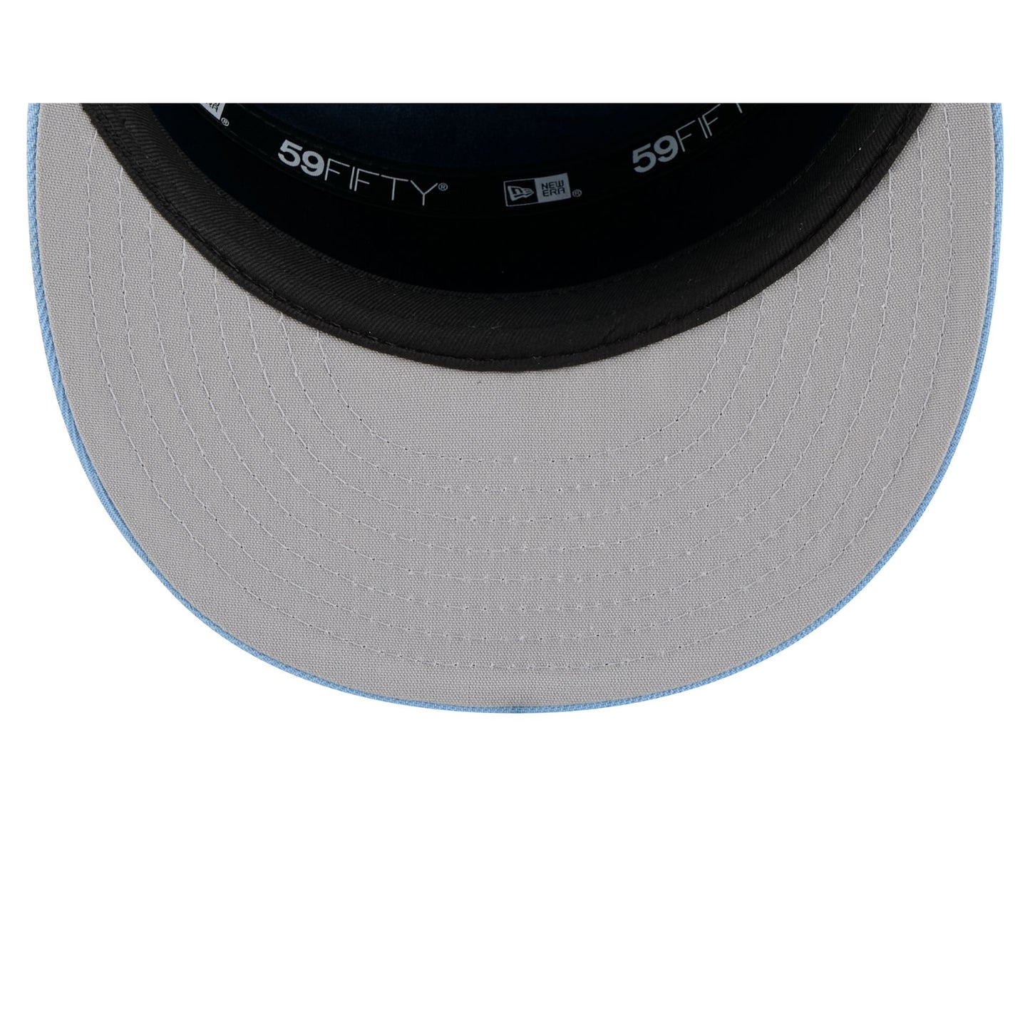 The Memphis Grizzlies 2025 Tip-Off Split Panel 59FIFTY Fitted Cap features an embroidered Grizzlies logo at the front panels against a pinstripe jersey fabrication with the NBA Logoman at the right-wear side. Additional details include a team wordmark at the rear and a gray undervisor.