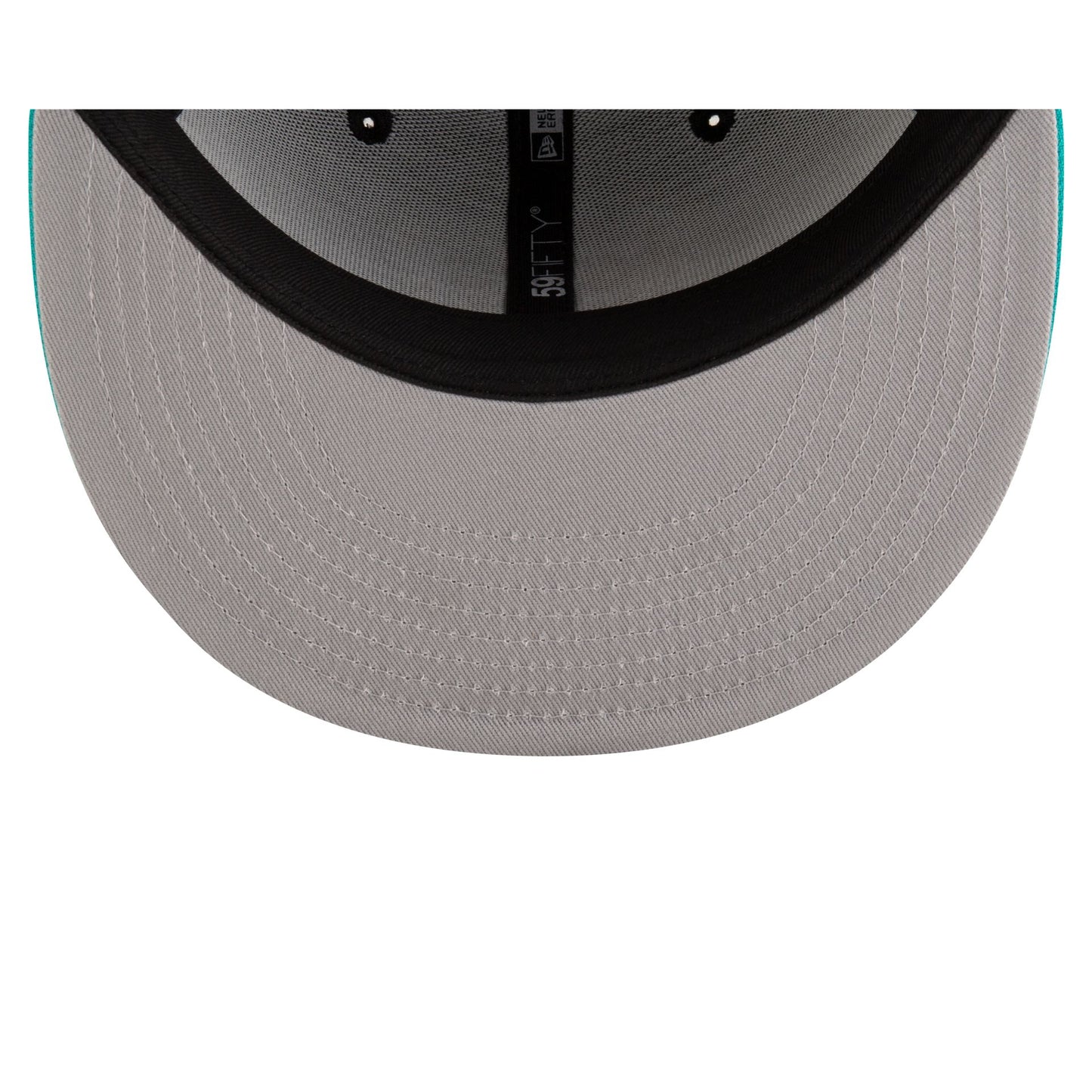 The Memphis Grizzlies Classic Edition Black 59FIFTY Fitted Cap features an embroidered Grizzlies logo at the front panels with a team logo at the right-wear side. Additional details include an NBA Logoman at the rear and a gray undervisor.