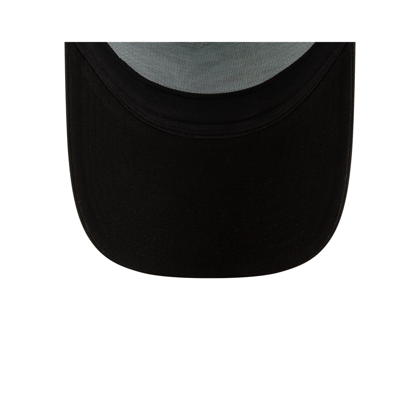 The Memphis Grizzlies Classic Edition Black 9FORTY A-Frame Trucker features an embroidered Grizzlies logo at the front panels with a team logo at the right-wear side. Additional details include a mesh back, a snapback closure at the rear, and a black undervisor.