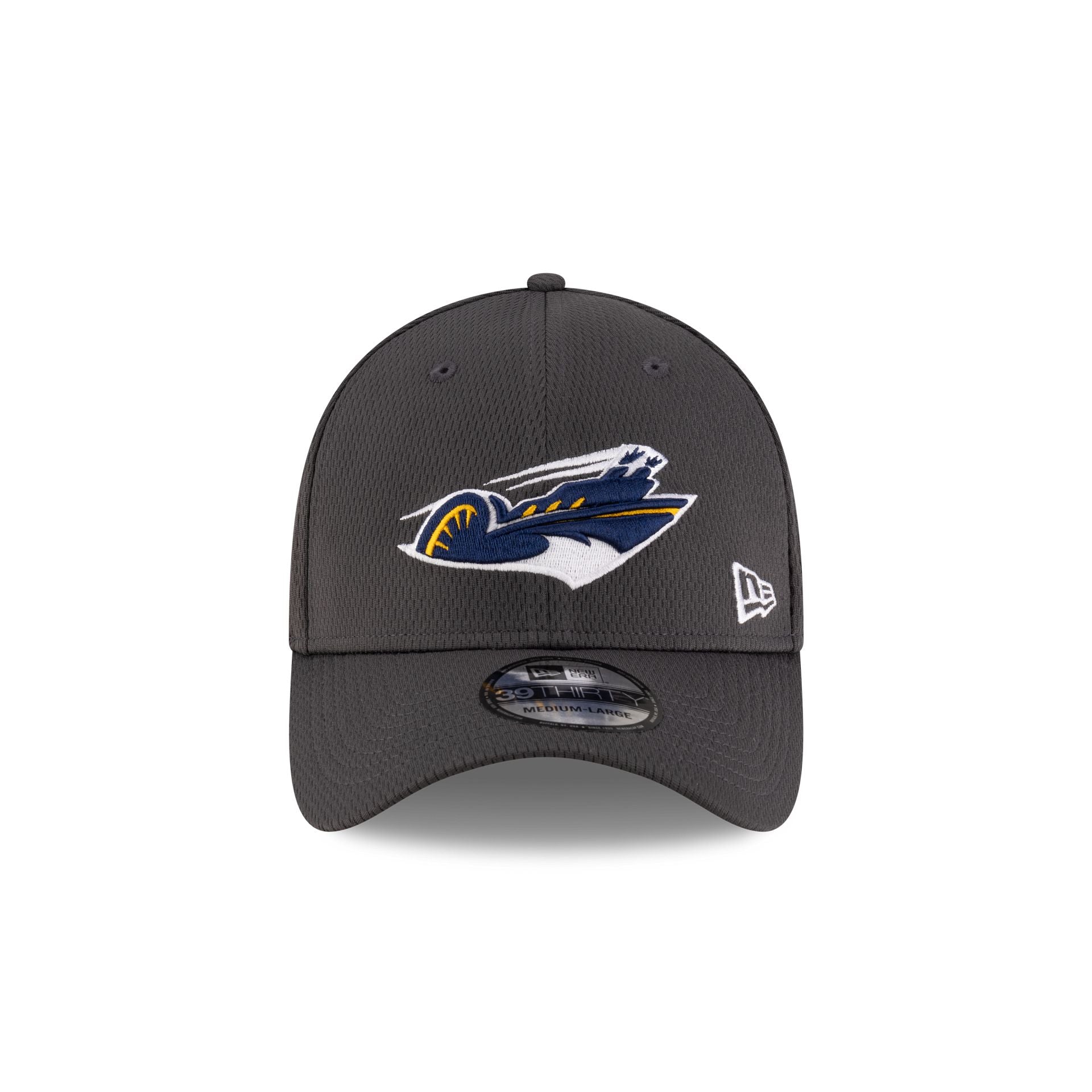 The Memphis Showboats Gray 39THIRTY Stretch Fit Cap features an embroidered Showboats logo at the front panels with the New Era Flag at the left. Additional details include a UFL logo at the rear and a gray undervisor.