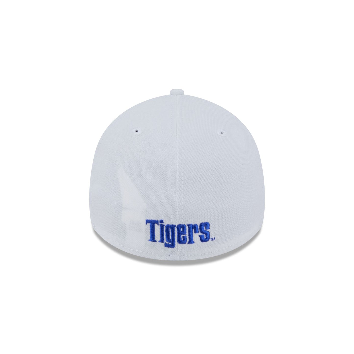 The Memphis Tigers Optic White 39THIRTY Stretch Fit features an embroidered Tigers logo at the front panels with a team wordmark at the rear.