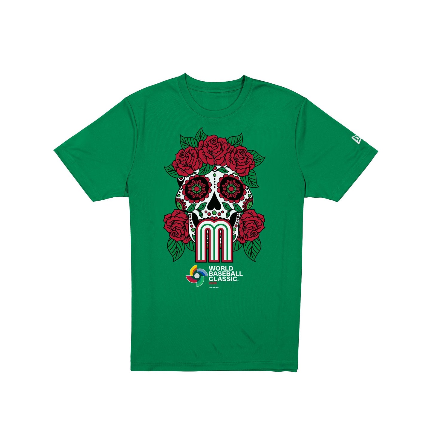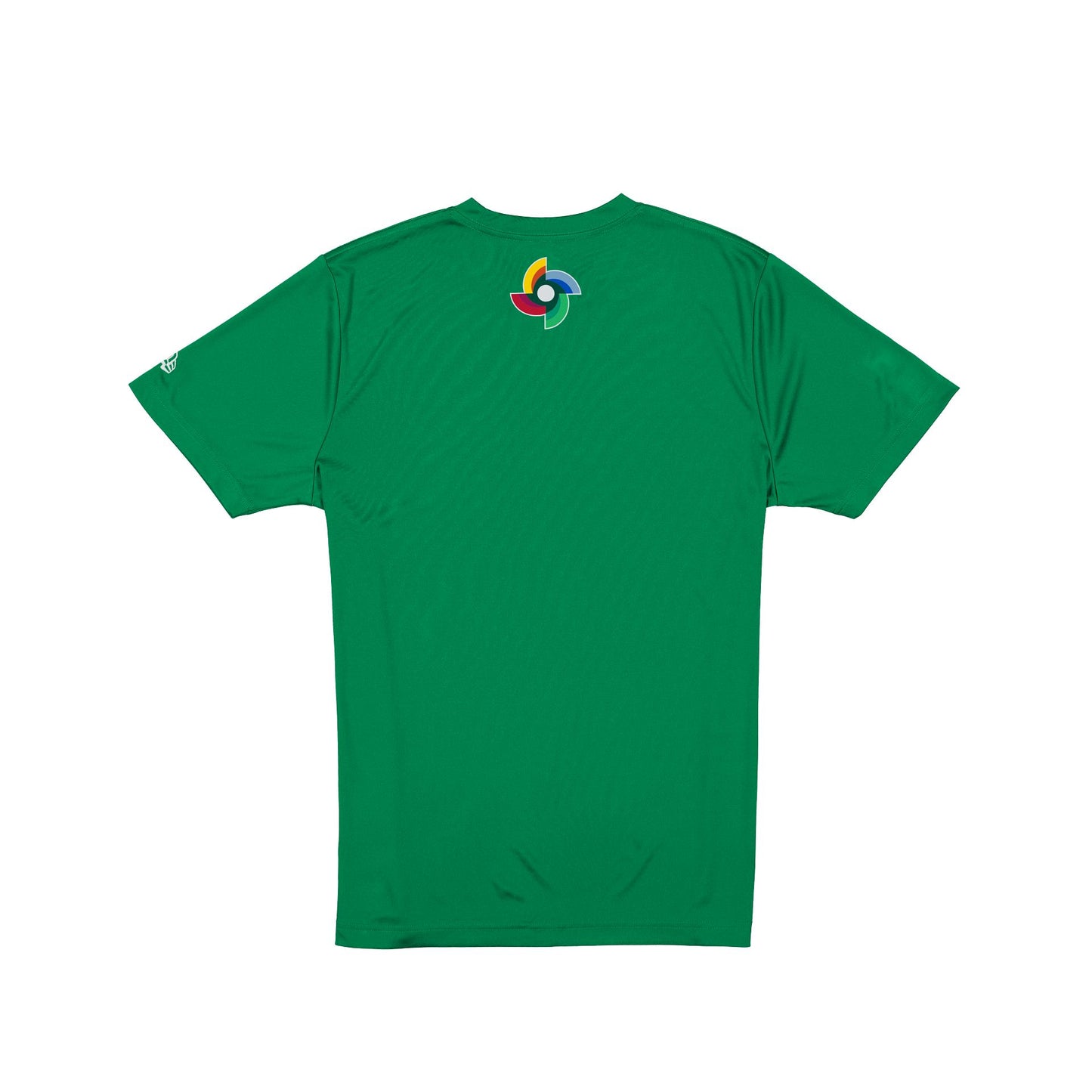 The Mexico 2026 World Baseball Classic Green T-Shirt features a screen-printed World Baseball Classic graphic a the front with the World Baseball Classic logo at the back.