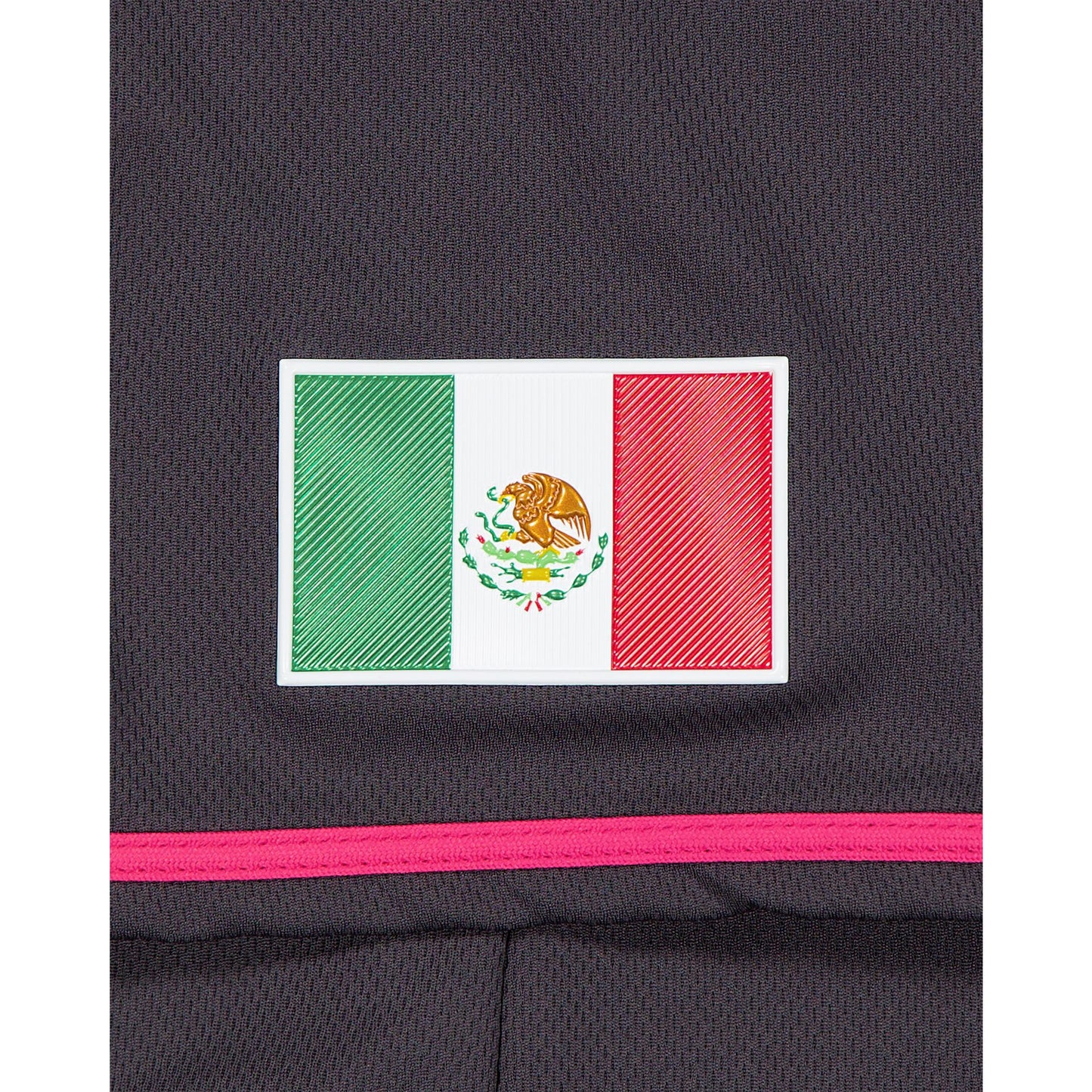The Mexico Baseball Away Jersey an embroidered applique Mexico Baseball logo at the left chest with the Mexican flag at the right-wear sleeve.