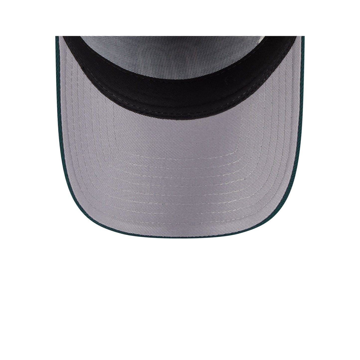 The Mexico Baseball New Era Anniversary Logos Green 9FORTY M-Crown A-Frame Snapback features an embroidered Mexico Baseball logo at the front panels with New Era Cap wordmark above a snapback closure at the rear. Additional details include New Era signature phrases and badges throughout the crown with a gray undervisor.