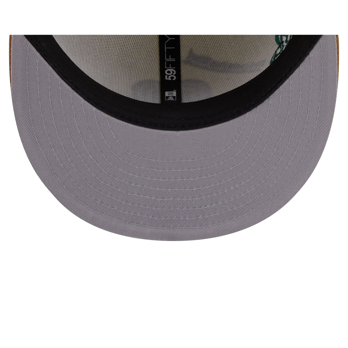 The Mexico Baseball New Era Anniversary Logos White 59FIFTY Fitted Cap features an embroidered Mexico Baseball logo at the front panels with New Era Cap wordmark at the rear. Additional details include New Era signature phrases and badges throughout the crown with a gray undervisor.