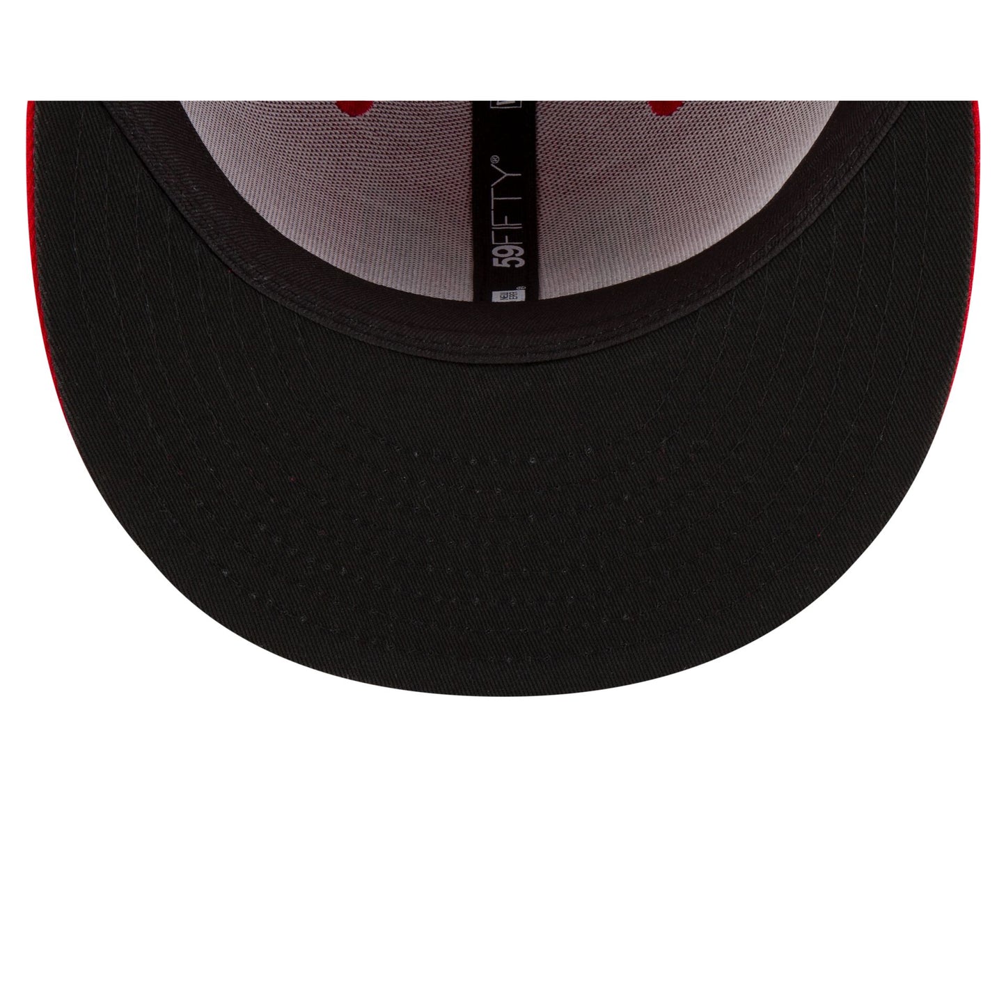 The Mexico Caribbean Series Away Red 59FIFTY Fitted Cap features an embroidered Mexico team logo at the front panels with a Mexico Pacific League logo at the rear. Additional details include a Serie del Caribe Miami 2024 patch at the right-wear side and a black undervisor.