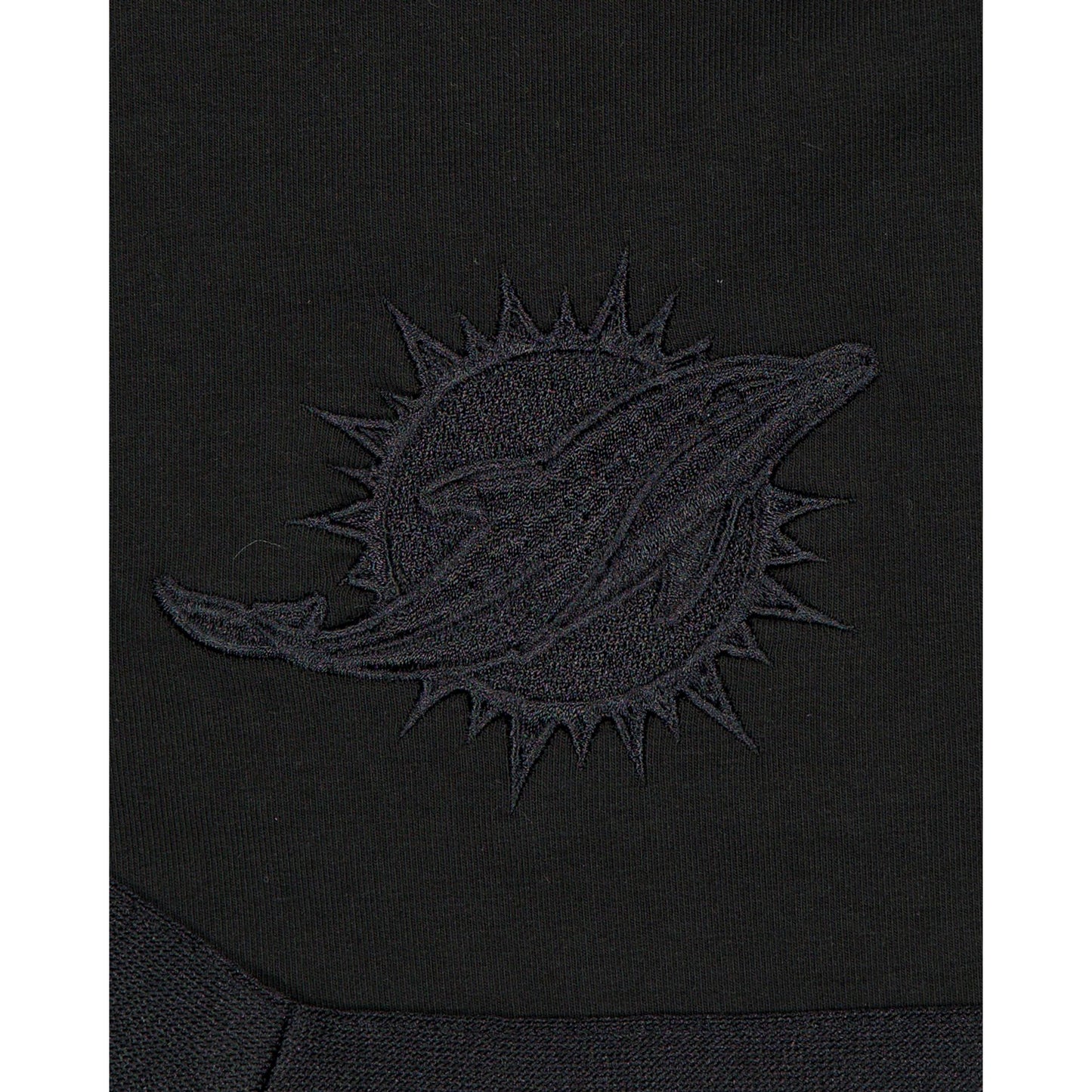 The Miami Dolphins Black on Black Logo Select Shorts features an embroidered Dolphins logo at the right-wear leg and a satin applique with a tonal stitch team wordmark at the rear left leg.