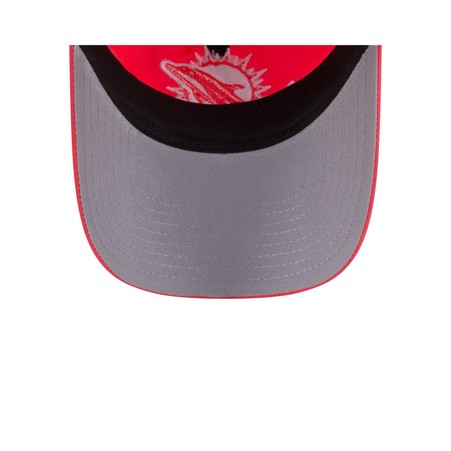 The Miami Dolphins Everyday Nylon Pink 9TWENTY Adjustable Cap features an embroidered Dolphins logo at the front panels with an adjustable strapback closure at the rear and a gray undervisor.