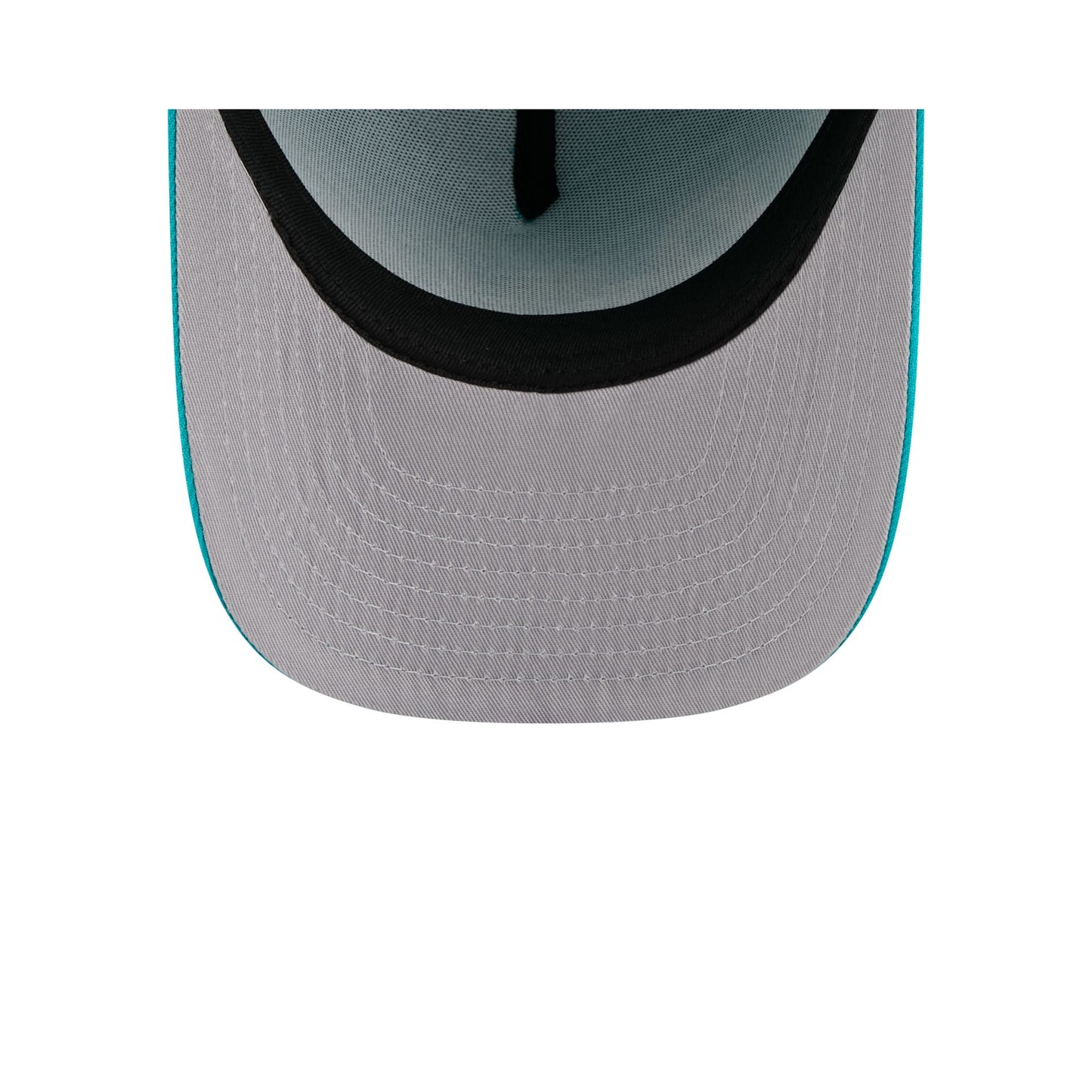 The Miami Dolphins Local Play 9FIFTY A-Frame Snapback features an embroidered Dolphins themed script wordmark at the front panels with a logo at the right-wear side. Additional details include an adjustable snapback closure at the rear and a gray undervisor.