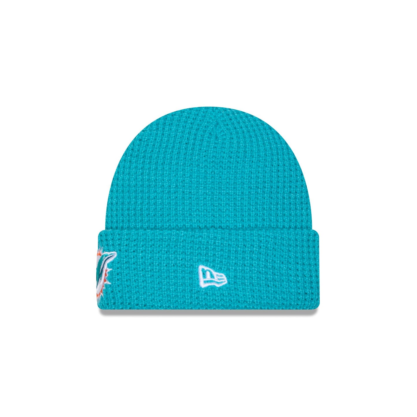The Miami Dolphins Waffle Stitch Knit Beanie features an embroidered Dolphins logo at the front cuff with a waffle stich throughout.
