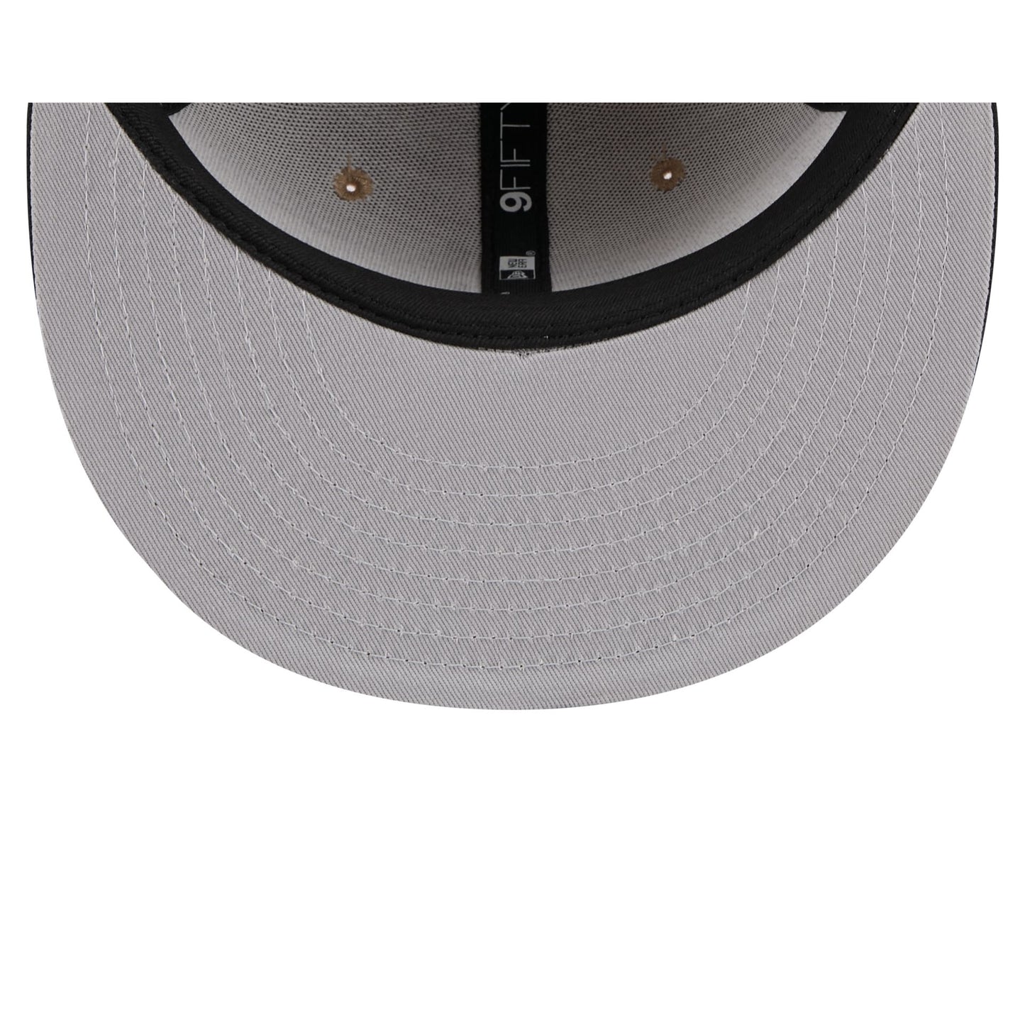 The Miami Heat 2024 Draft 9FIFTY Snapback features an embroidered Heat logo and team wordmark at the front panels with the official NBA Logoman above a snapback closure at the rear and a gray undervisor.