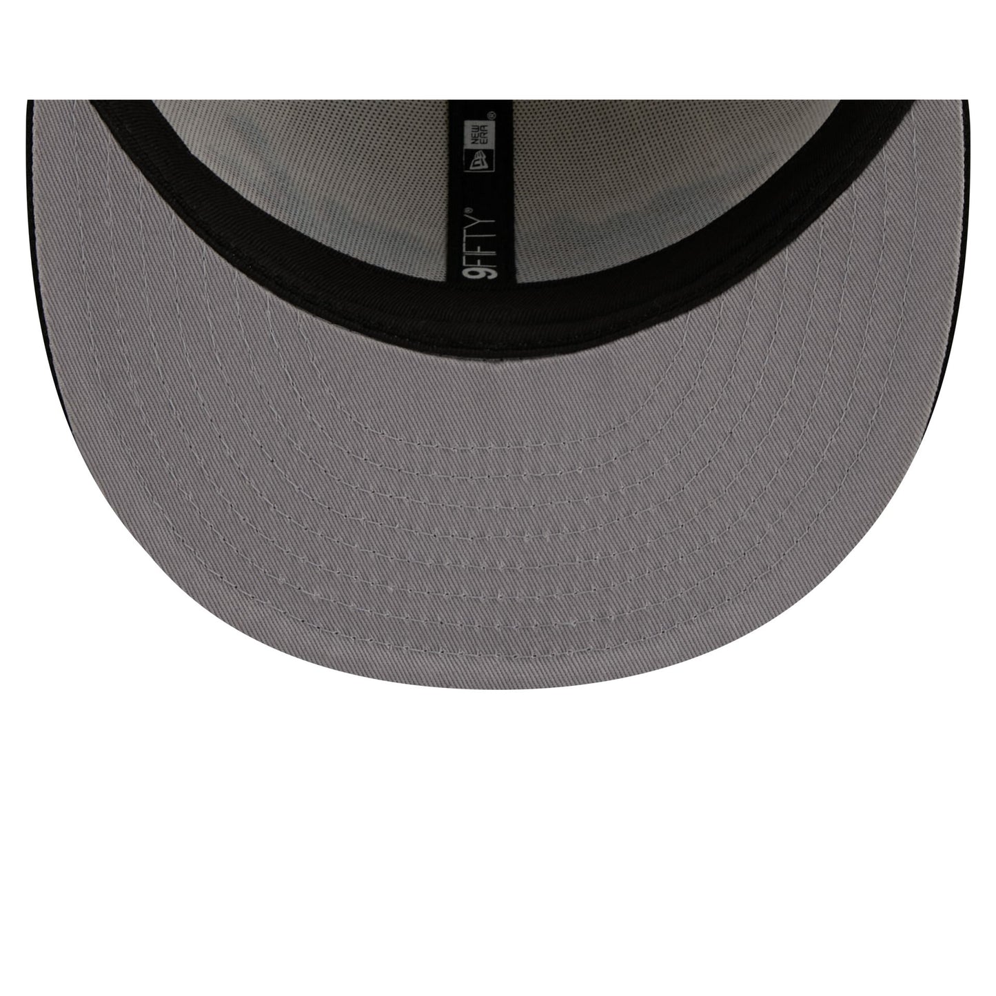 The Miami Heat 2025 City Edition Chrome White Corduroy 9FIFTY Snapback features an embroidered Heat City Edition logo at the front panels with a City Edition jock tag stitched at the right-wear side. Additional details include a corduroy fabrication, the NBA Logoman above an adjustable snapback closure at the rear, and a gray undervisor.