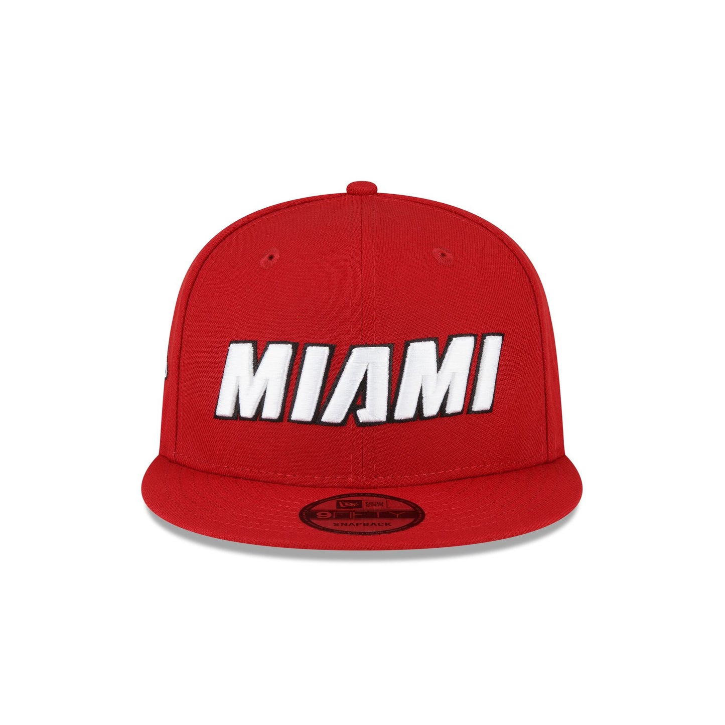 The Miami Heat 2025 Statement Edition 9FIFTY Snapback features an embroidered Heat Statement Edition logo at the front panels with a logo at the right-wear side. Additional details include the NBA Logoman above an adjustable snapback closure at the rear and a gray undervisor.