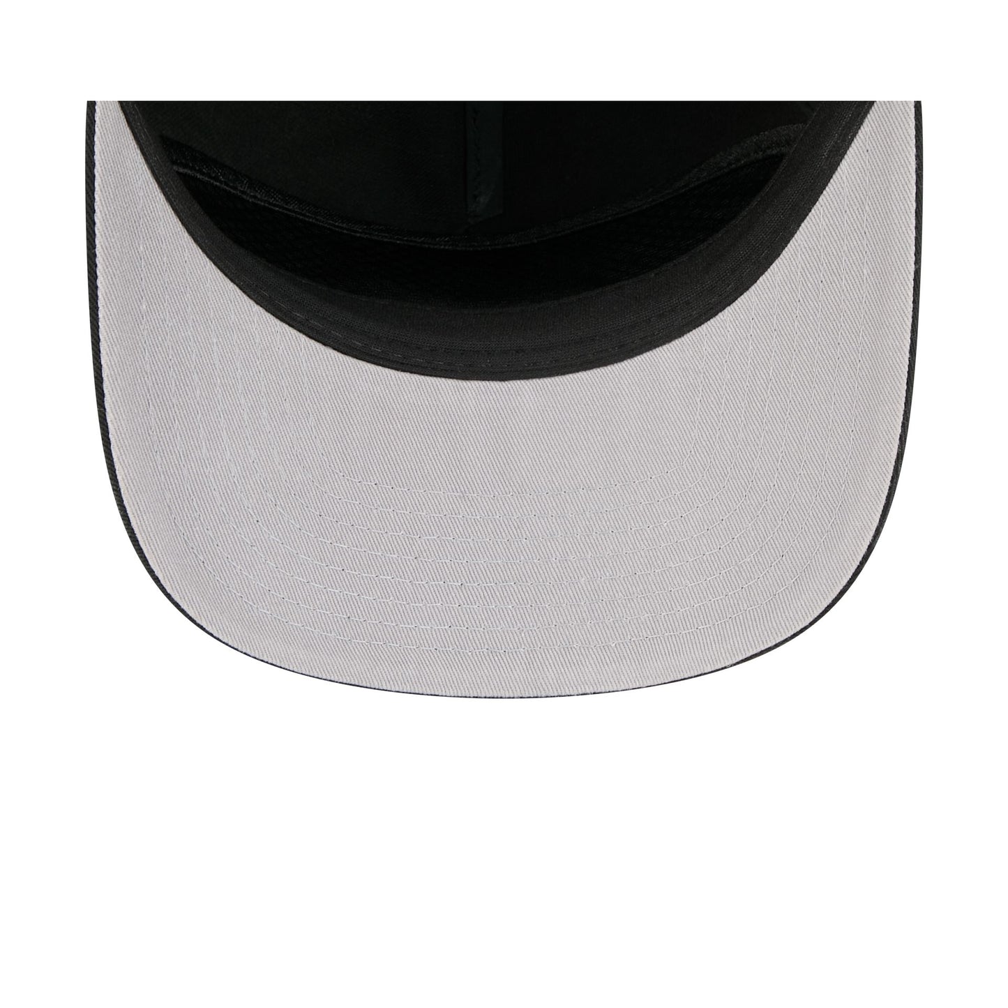 The Miami Heat All Black Scripted 19TWENTY Adjustable Cap features an embroidered Heat all black script wordmark at the front panels with a matching team logo at the right-wear side. Additional details include an adjustable snapback closure at the rear and a gray undervisor.