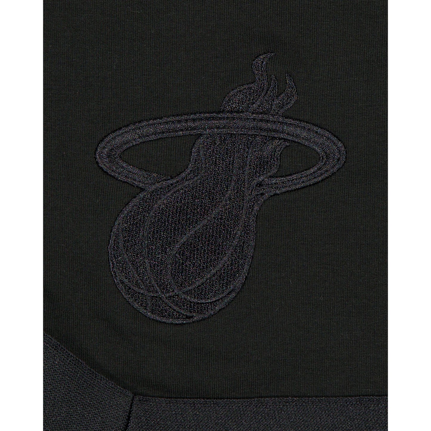 The Miami Heat Black on Black Logo Select Shorts features an embroidered Heat logo at the right-wear leg and a satin applique with a tonal stitch team wordmark at the rear left leg.