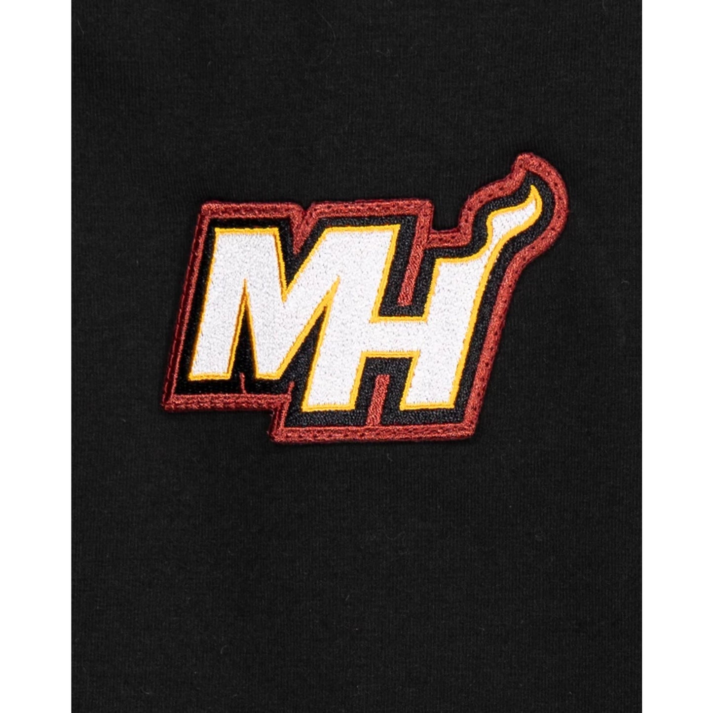The Miami Heat Logo Select Hoodie features a chenille applique Heat logo at the left chest with team patches at each sleeve and an embroidered team wordmark at the rear.