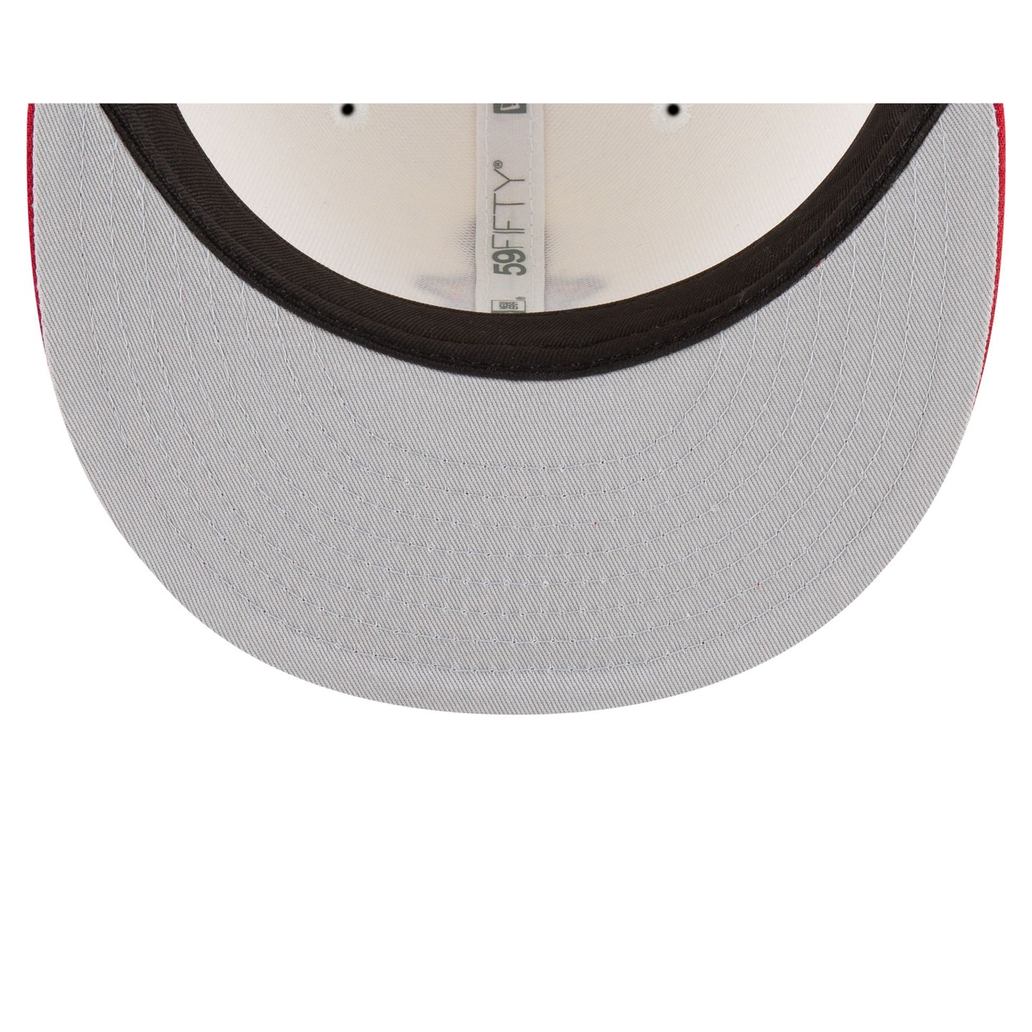 The Miami Heat Mascot 59FIFTY Fitted Cap features an embroidered Heat mascot logo at the front panels with a matching team wordmark at the rear and a gray undervisor.