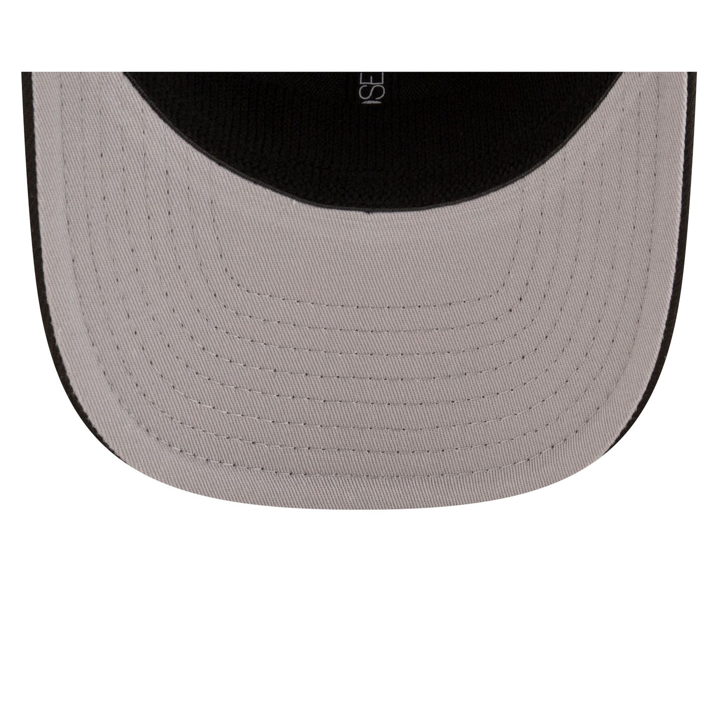 The Miami Heat Team 9SEVENTY Stretch-Snap features an embroidered Heat logo at the front panels with the NBA Logoman above an adjustable stretch-snap closure at the rear and a gray undervisor.