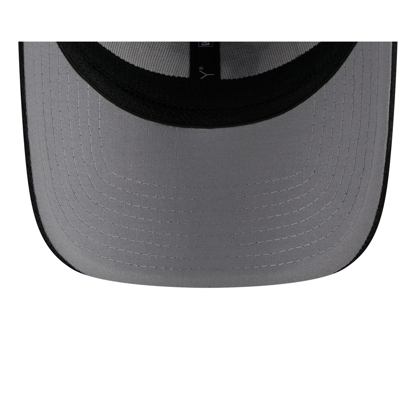 The Miami Marlins 2025 Batting Practice 39THIRTY Stretch Fit Cap features an embroidered Marlins logo at the front panels with a matching team wordmark at the rear and pinstripe crown. Additional details include a pivot knit fabrication, a black visor, and a gray undervisor.