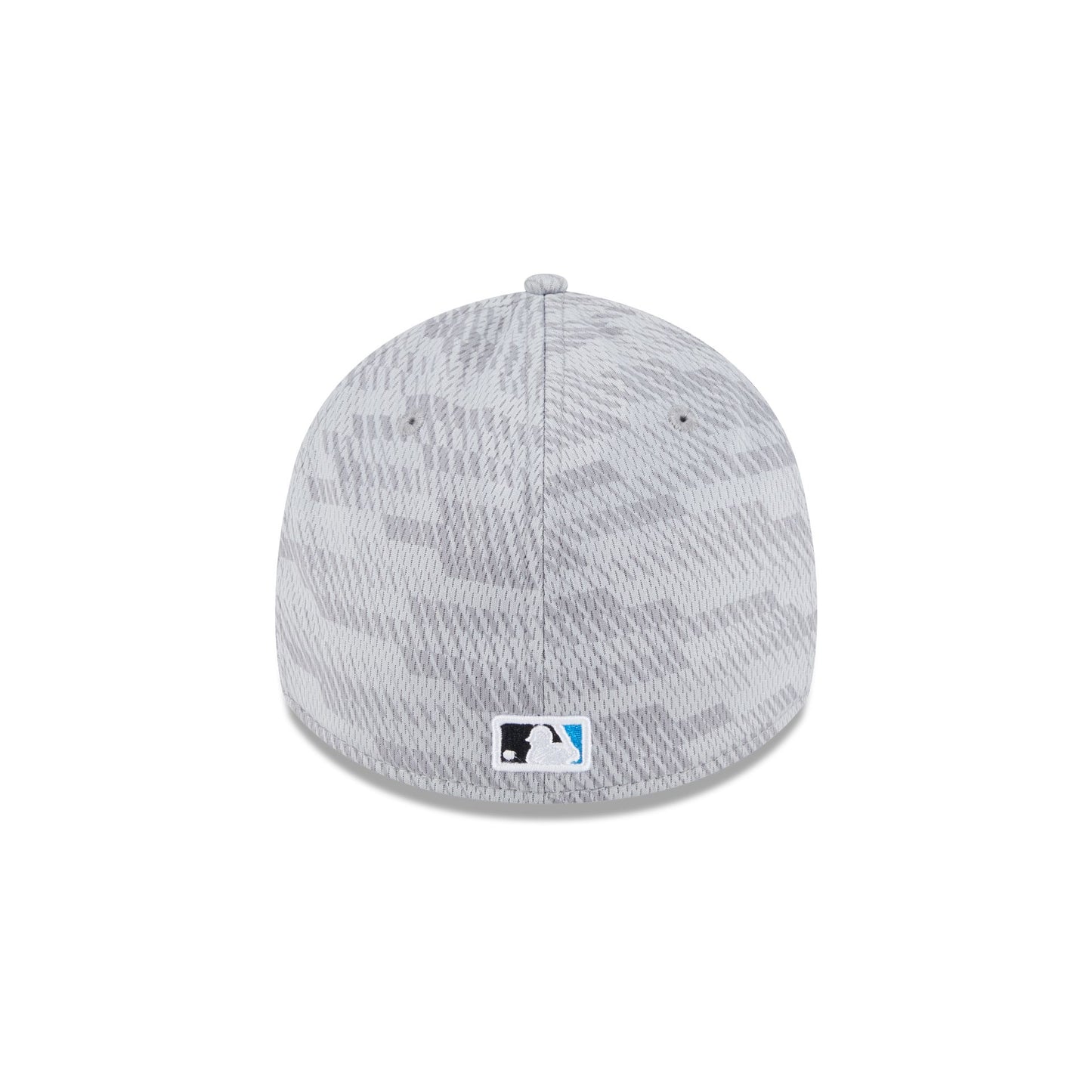 The Miami Marlins 2025 Clubhouse Gray 39THIRTY Stretch Fit Cap features an embroidered Marlins logo at the front panels with a matching MLB Batterman logo at the rear and a dashmark mesh fabrication throughout. Additional details include a silicone team tag on the right-wear side and team logo on the undervisor.