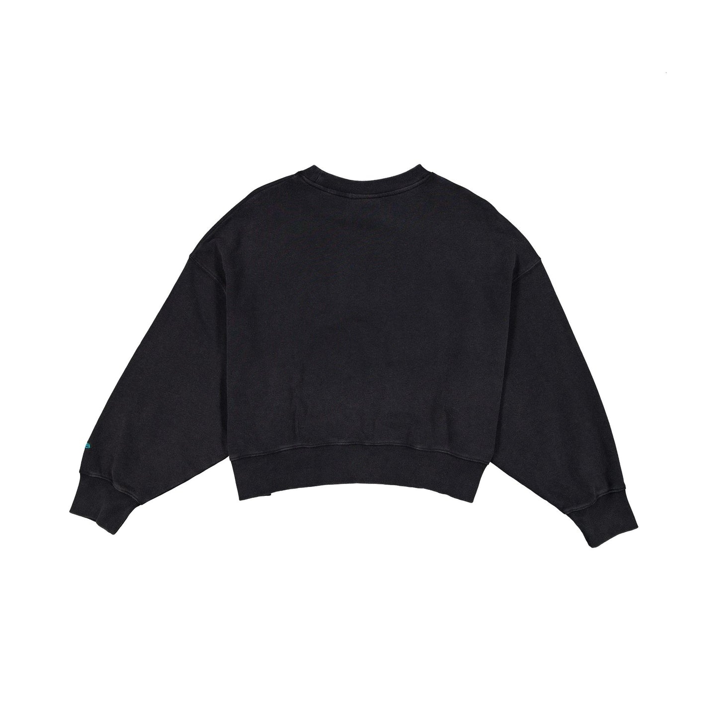 The Miami Marlins City Connect Women's Distressed Crewneck features a screen-printed Marlins graphic at the front and a New Era jock tag at the left hip.
