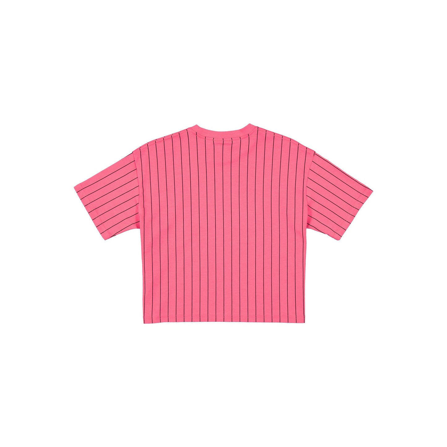 The Miami Marlins City Connect Women's Pinstripe T-Shirt features a screen-printed Marlins wordmark and logo at the front with a New Era jock tag at the left hip.