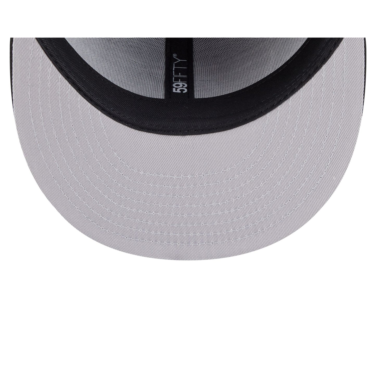 The Miami Marlins Deceptor 59FIFTY Fitted Cap features an embroidered Marlins deceptive logo at the front panels with a team logo at the right-wear side. Additional details include a wordmark at the rear, and a gray undervisor.