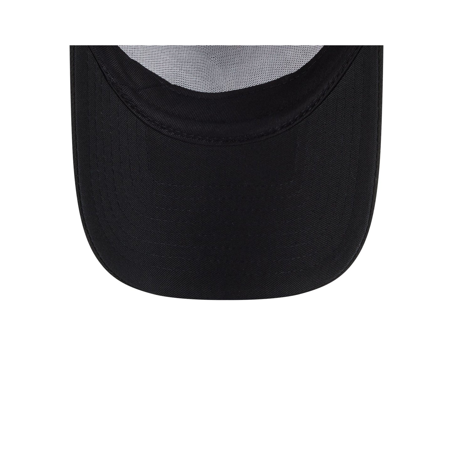 The Miami Marlins Generation Mascots 9FORTY A-Frame Trucker features an embroidered Marlins baby and adult mascot at the front panels. Additional details include a snapback closure at a mesh rear.